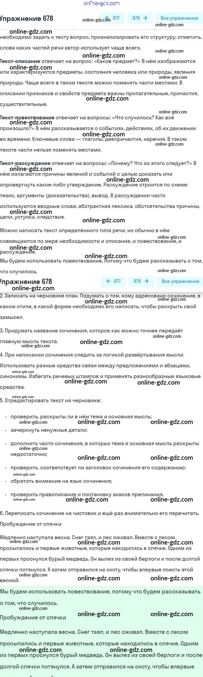 Готовые домашние задания по Русскому языку за 5 класс Учебник Разумовская, Львова 2014 - Упражнения 678