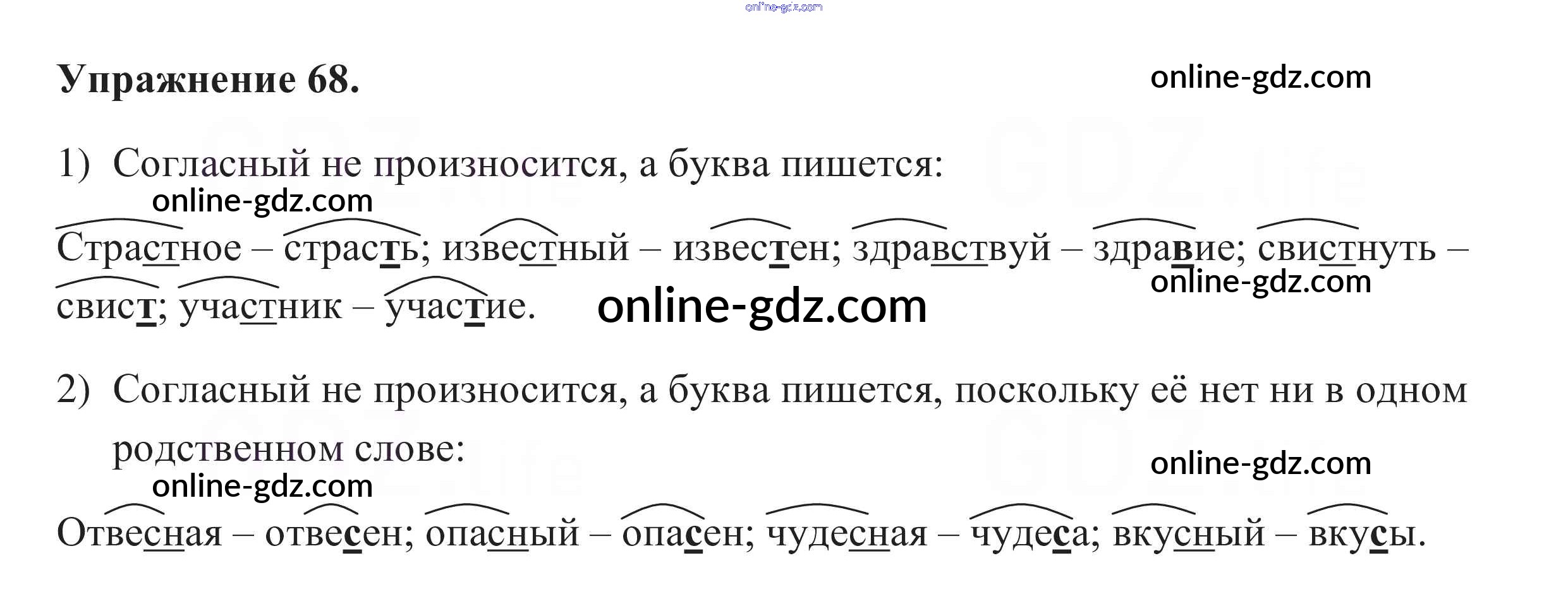 Готовые домашние задания по Русскому языку за 5 класс Учебник Разумовская, Львова 2014 - Упражнения 68
