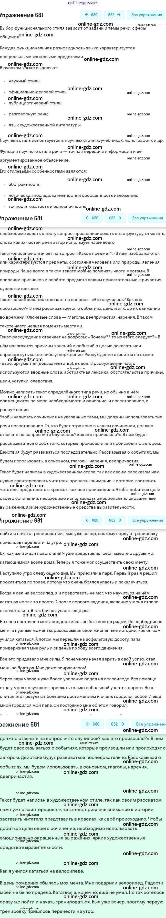 Готовые домашние задания по Русскому языку за 5 класс Учебник Разумовская, Львова 2014 - Упражнения 681