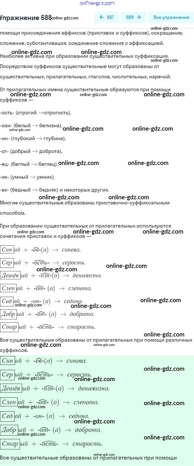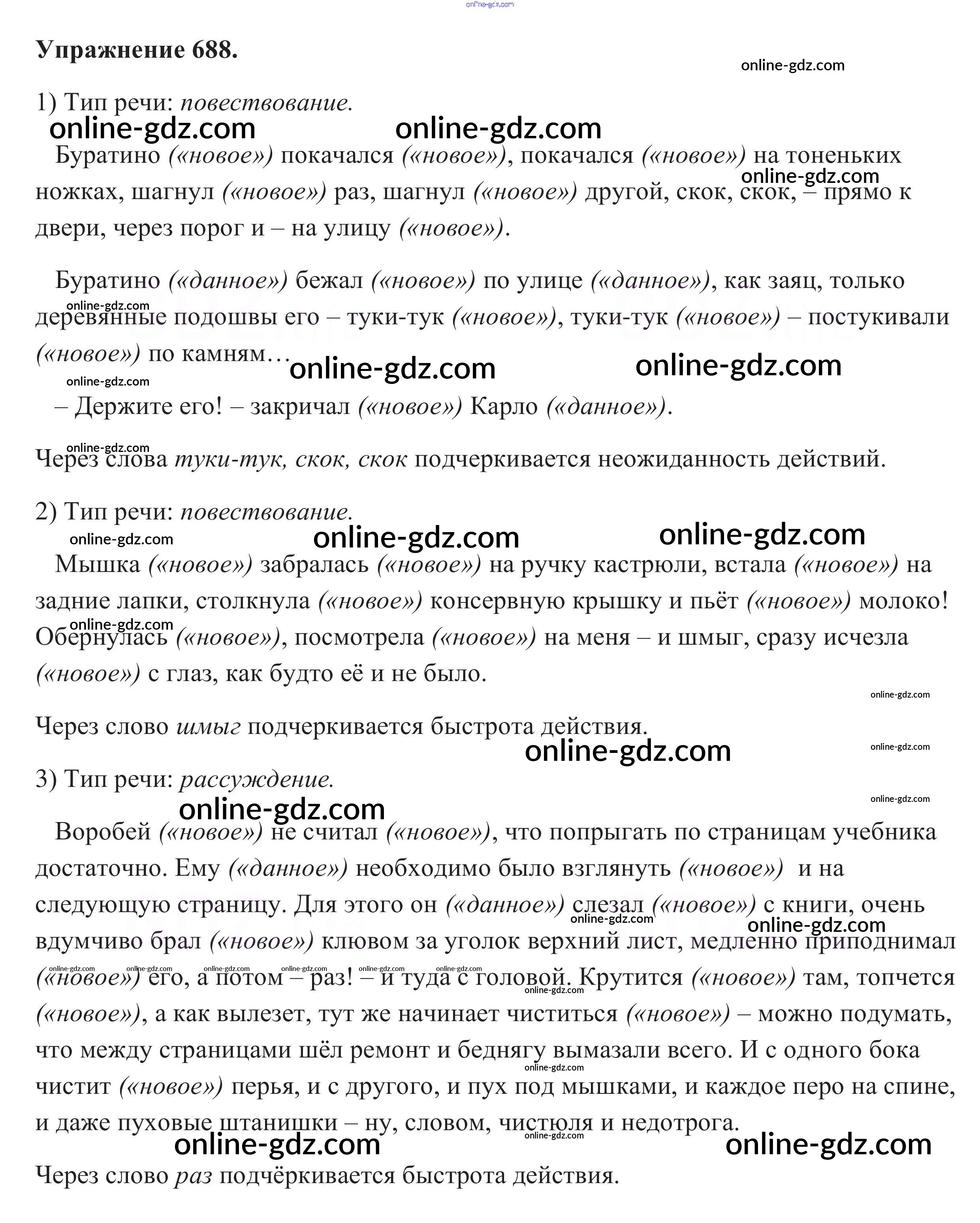 Готовые домашние задания по Русскому языку за 5 класс Учебник Разумовская, Львова 2014 - Упражнения 688
