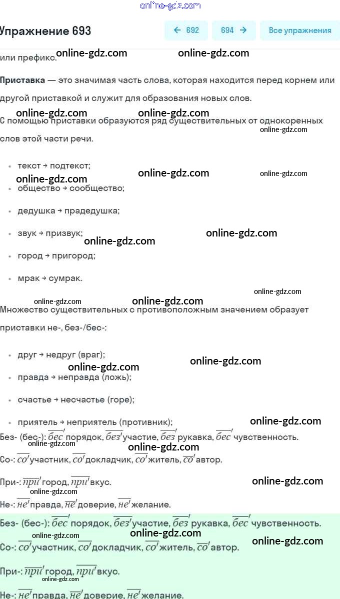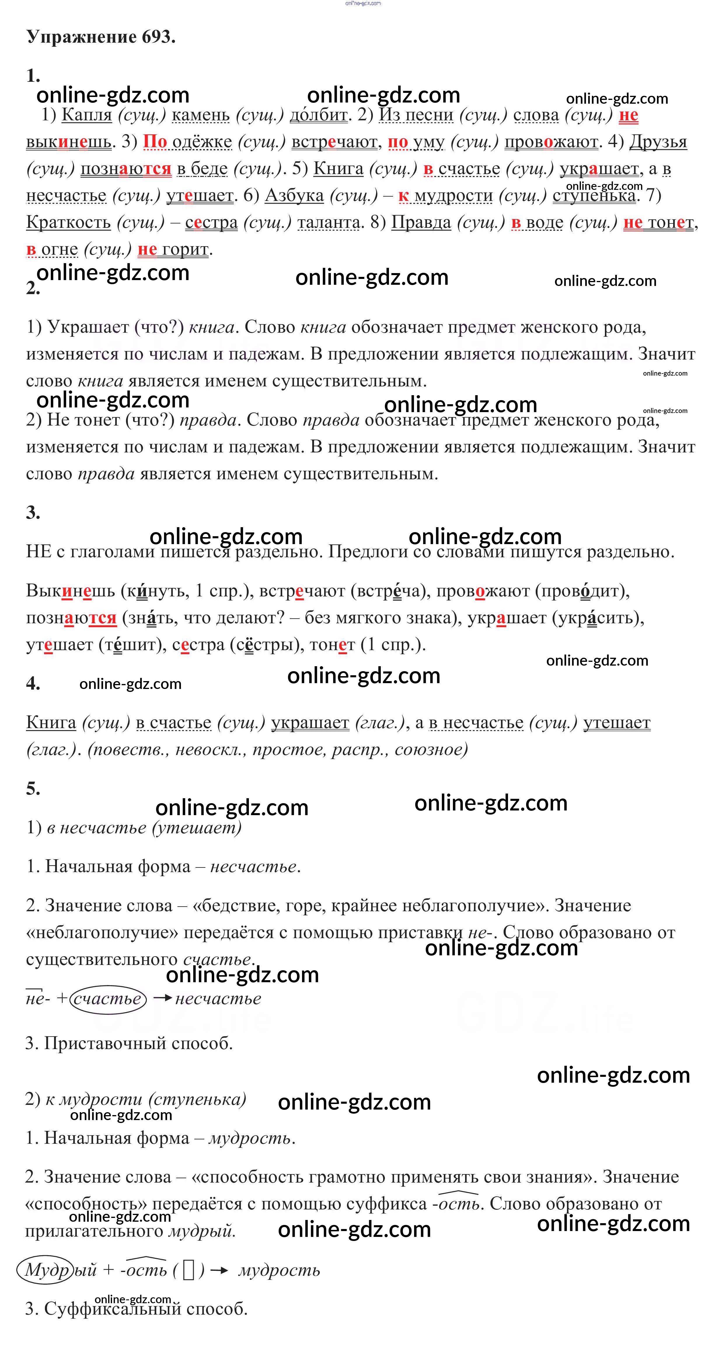 Готовые домашние задания по Русскому языку за 5 класс Учебник Разумовская, Львова 2014 - Упражнения 693