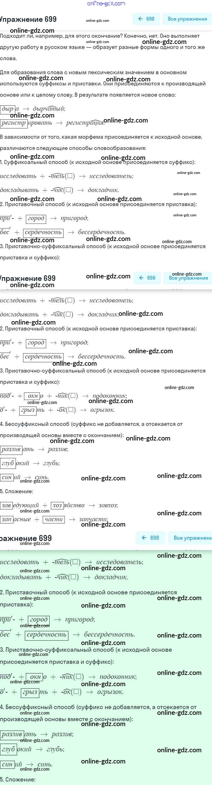 Готовые домашние задания по Русскому языку за 5 класс Учебник Разумовская, Львова 2014 - Упражнения 699