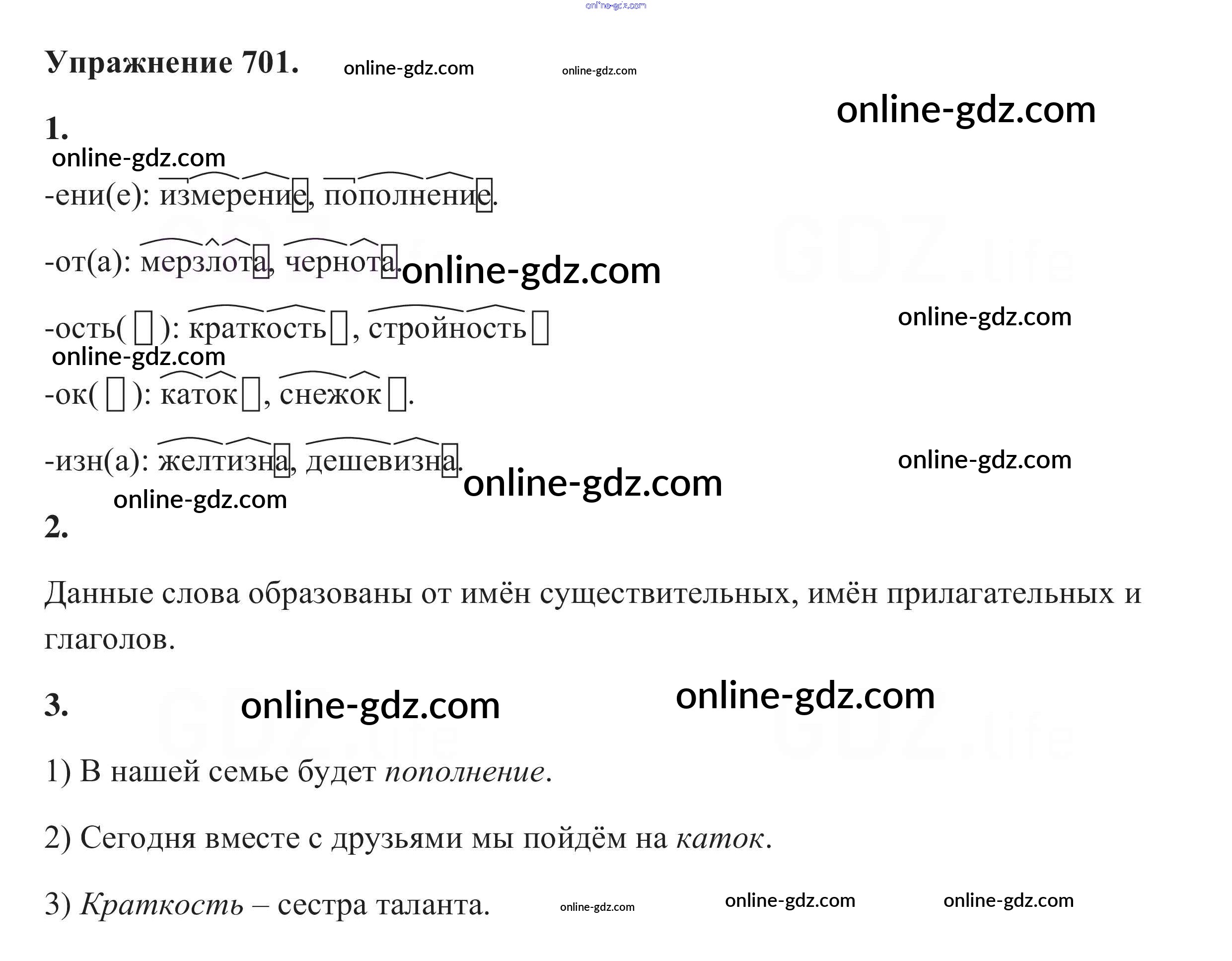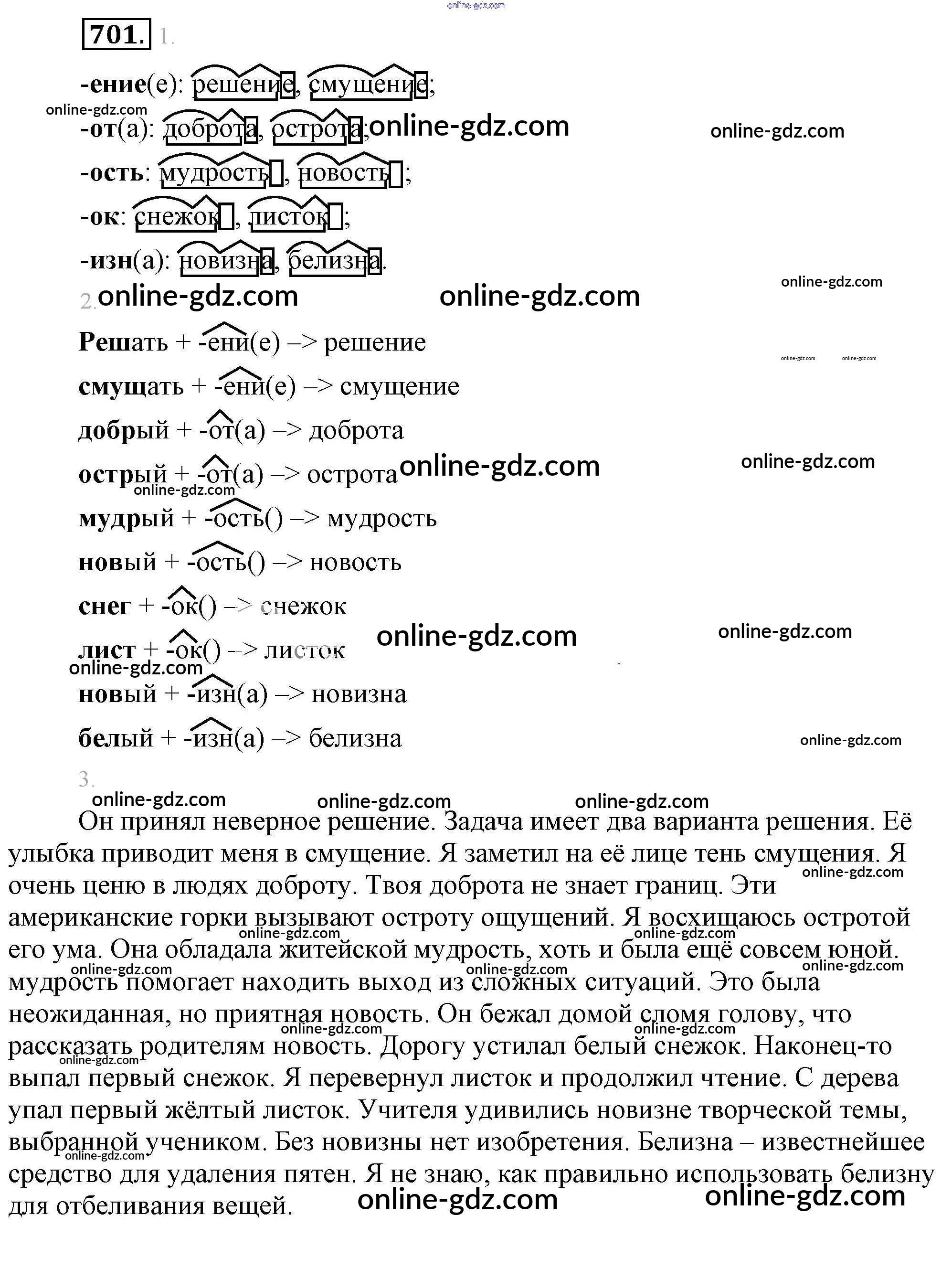 Готовые домашние задания по Русскому языку за 5 класс Учебник Разумовская, Львова 2014 - Упражнения 701