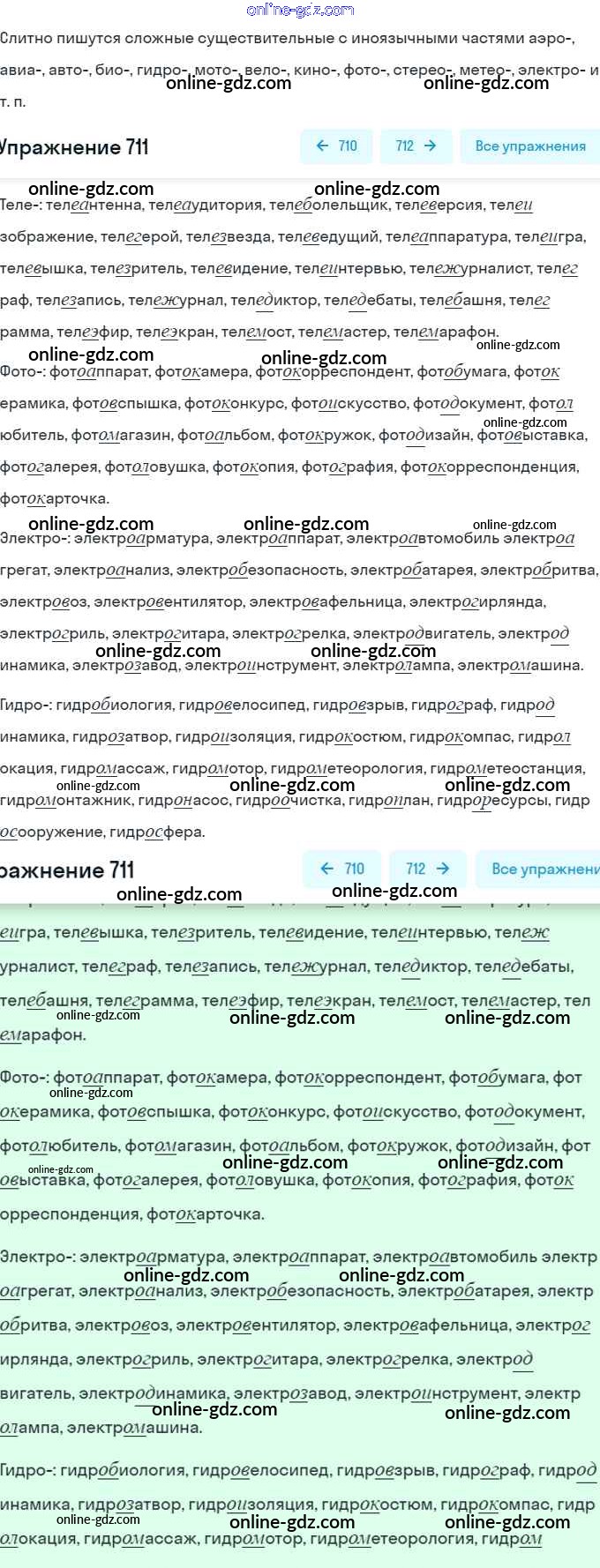 Готовые домашние задания по Русскому языку за 5 класс Учебник Разумовская, Львова 2014 - Упражнения 711