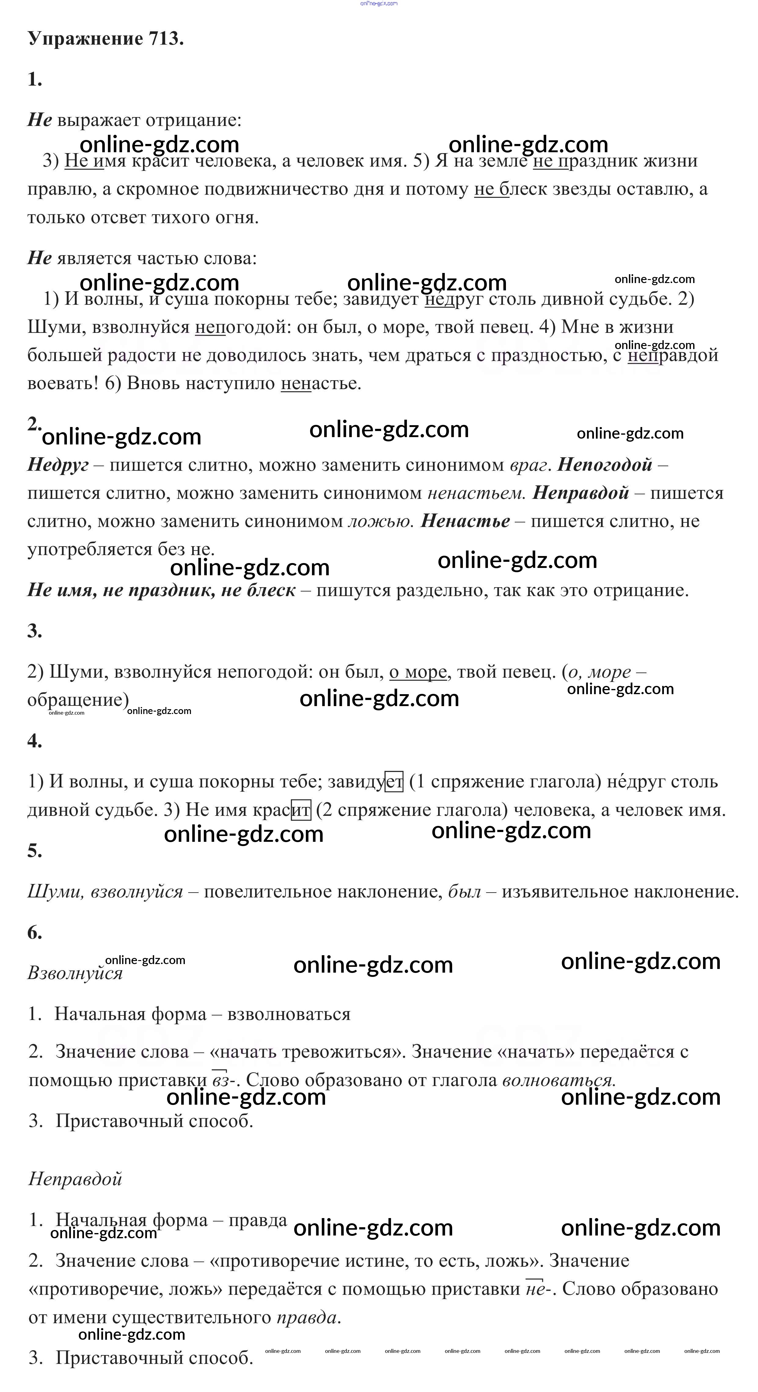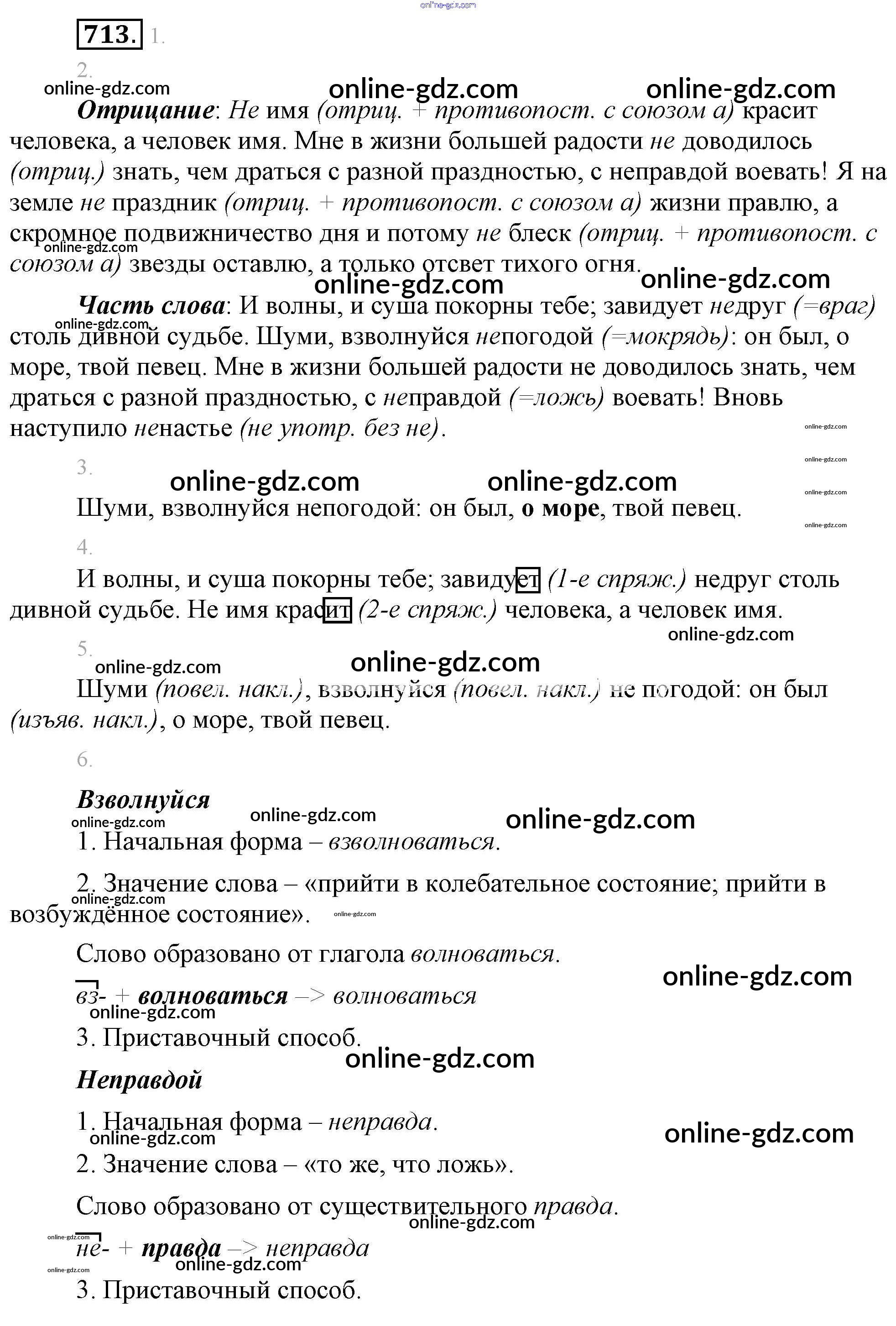 Готовые домашние задания по Русскому языку за 5 класс Учебник Разумовская, Львова 2014 - Упражнения 713