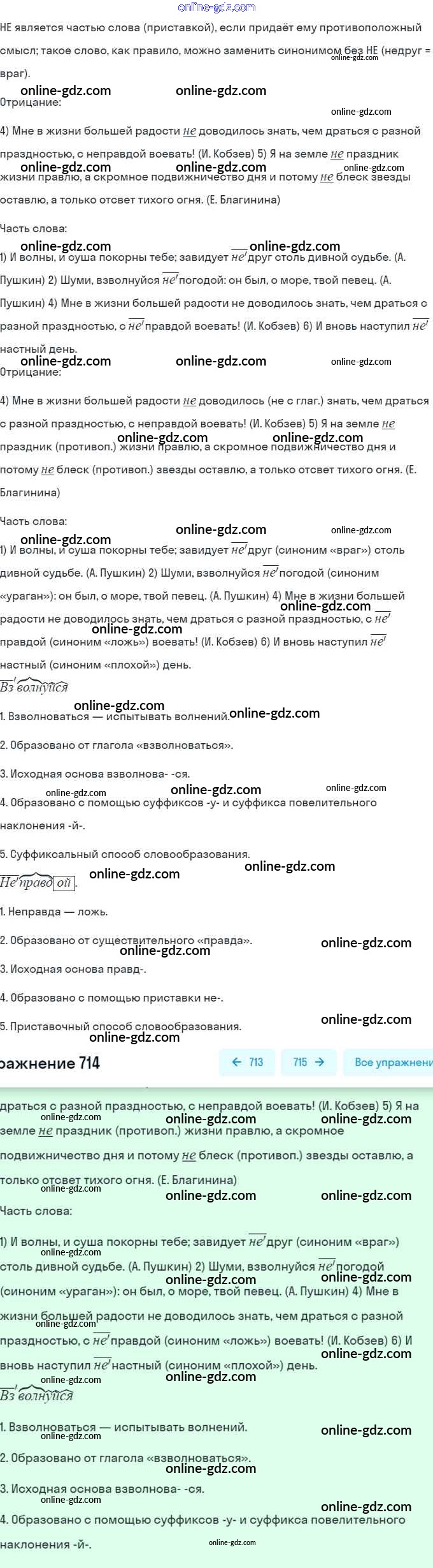Готовые домашние задания по Русскому языку за 5 класс Учебник Разумовская, Львова 2014 - Упражнения 714