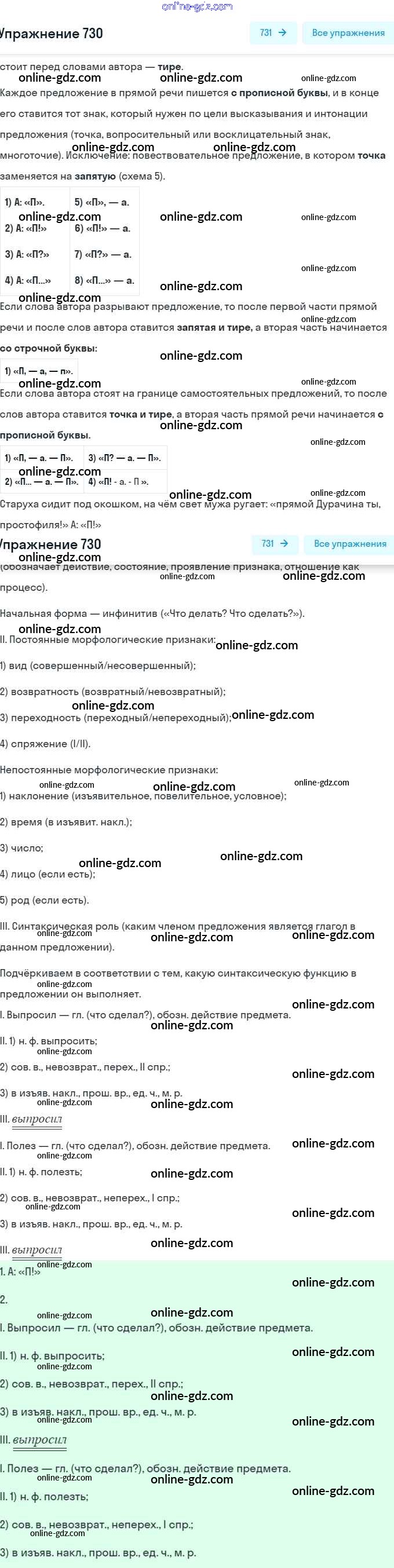 Готовые домашние задания по Русскому языку за 5 класс Учебник Разумовская, Львова 2014 - Упражнения 730