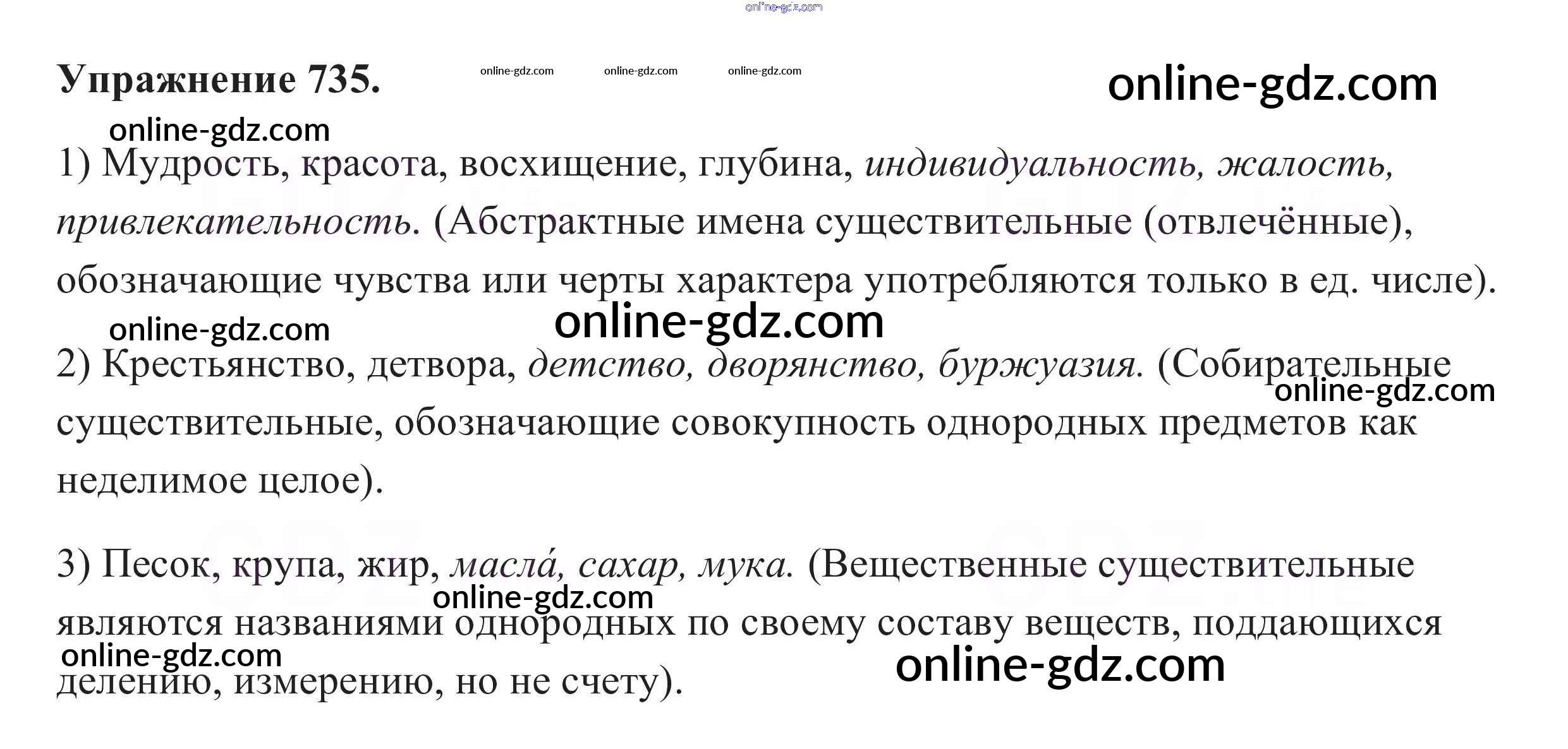 Готовые домашние задания по Русскому языку за 5 класс Учебник Разумовская, Львова 2014 - Упражнения 735