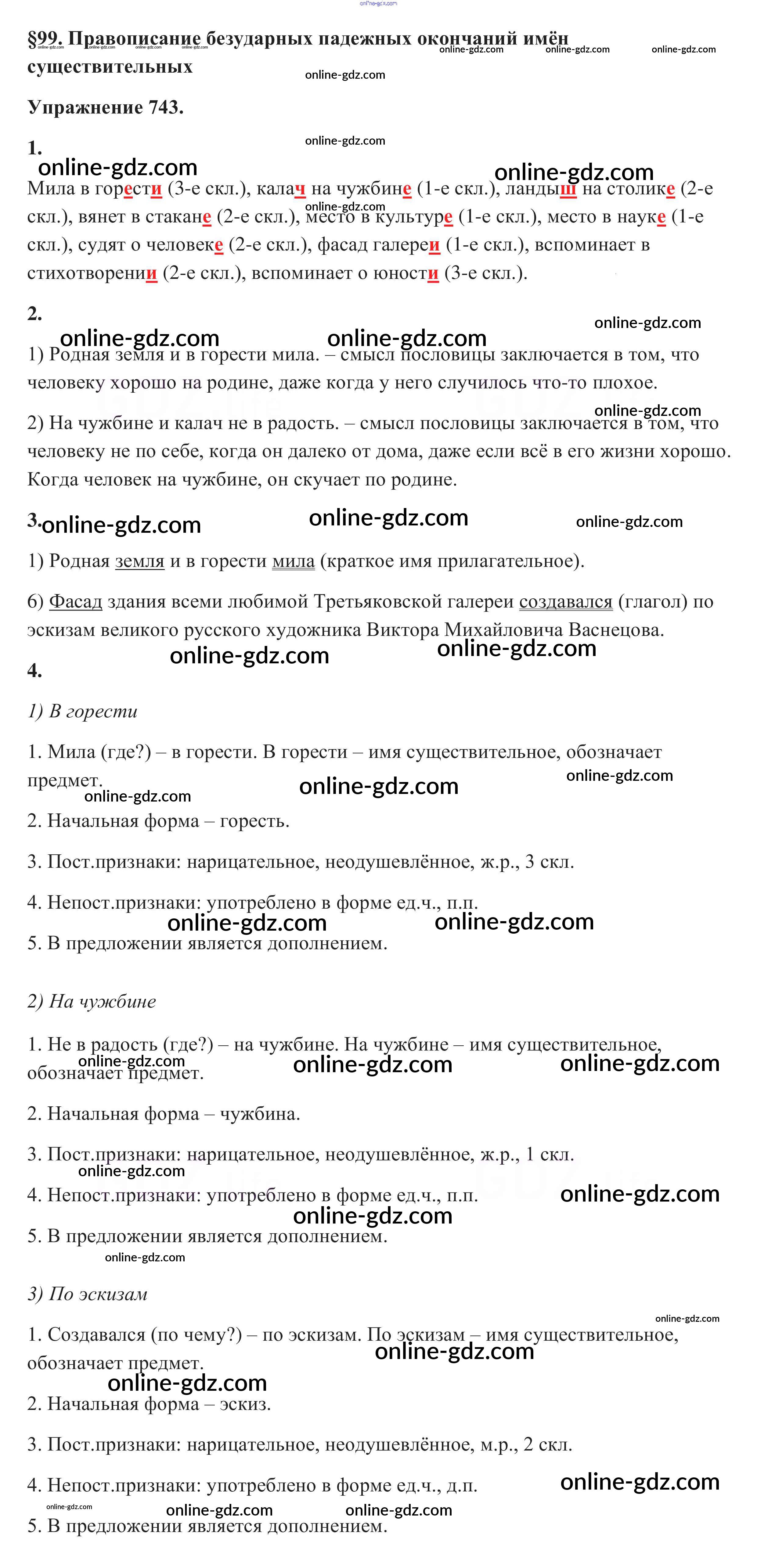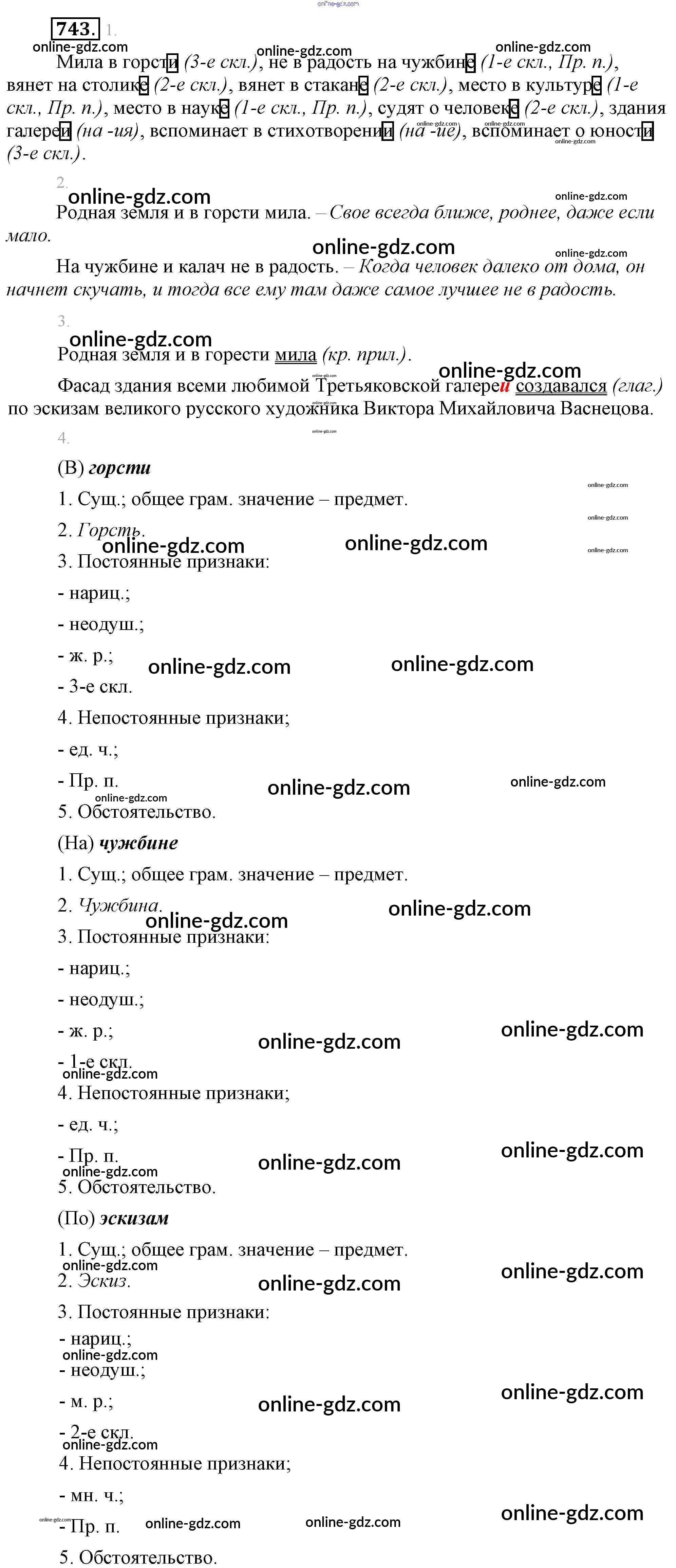 Готовые домашние задания по Русскому языку за 5 класс Учебник Разумовская, Львова 2014 - Упражнения 743