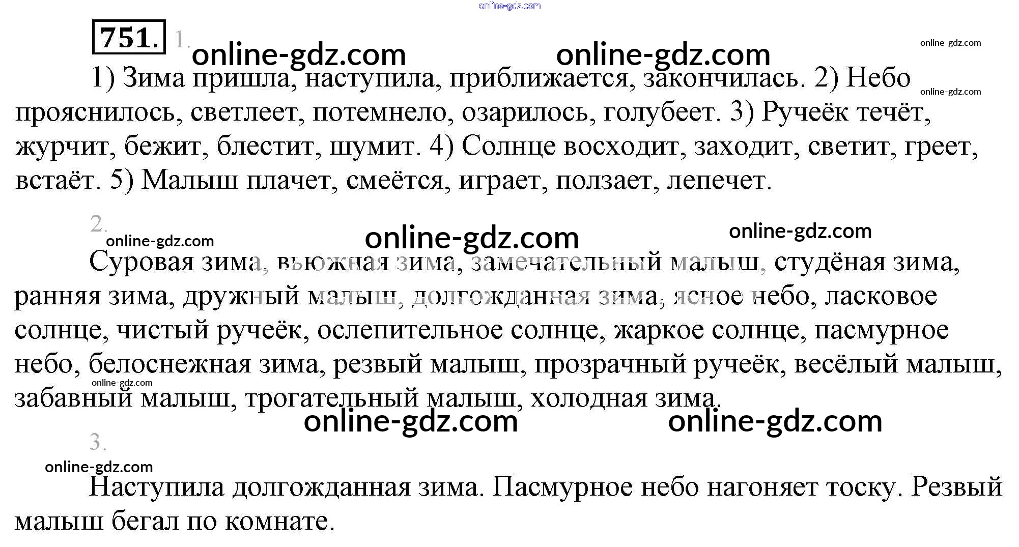 Готовые домашние задания по Русскому языку за 5 класс Учебник Разумовская, Львова 2014 - Упражнения 751