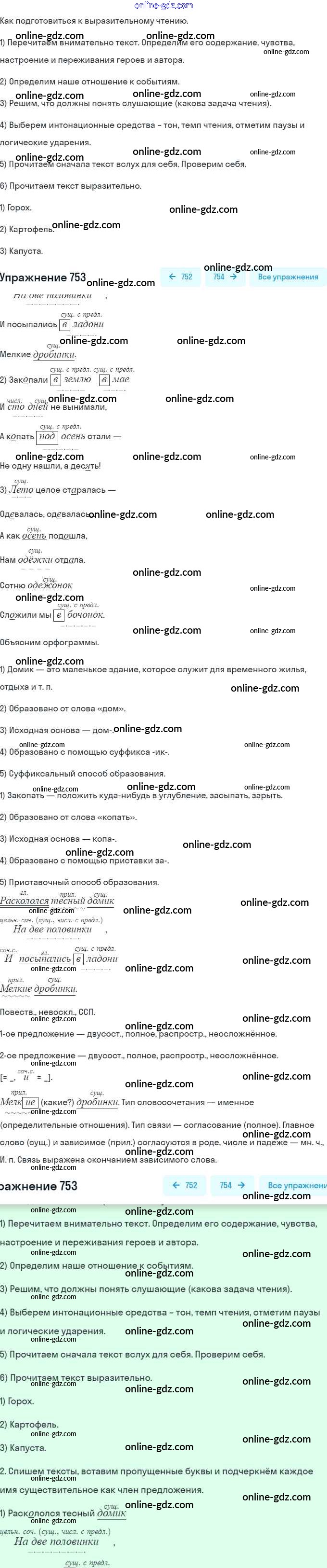 Готовые домашние задания по Русскому языку за 5 класс Учебник Разумовская, Львова 2014 - Упражнения 753