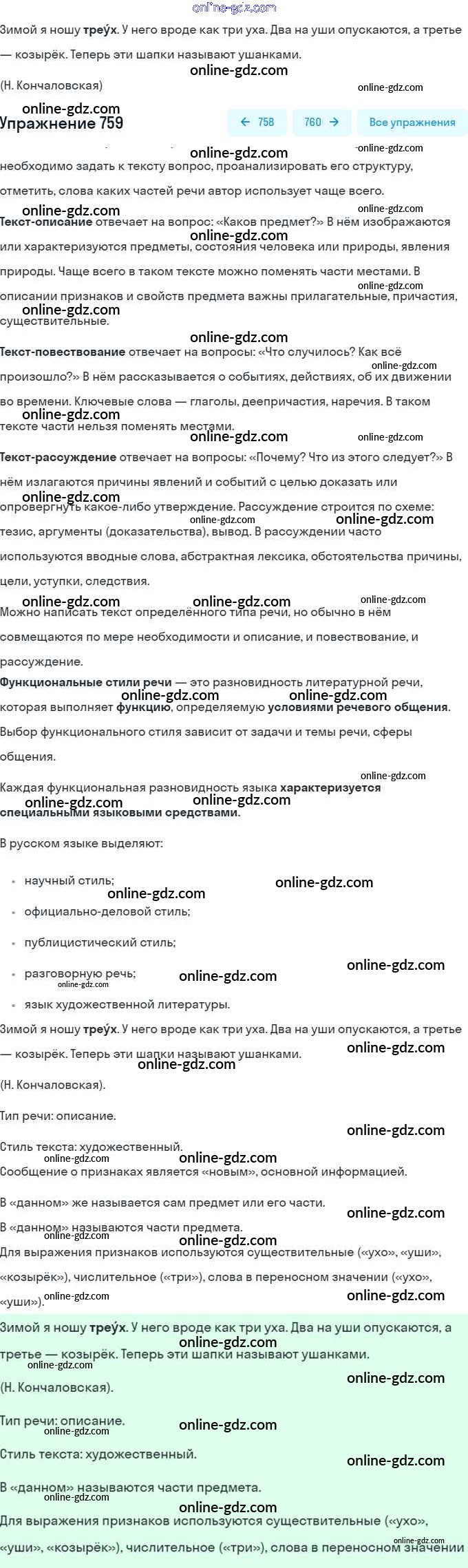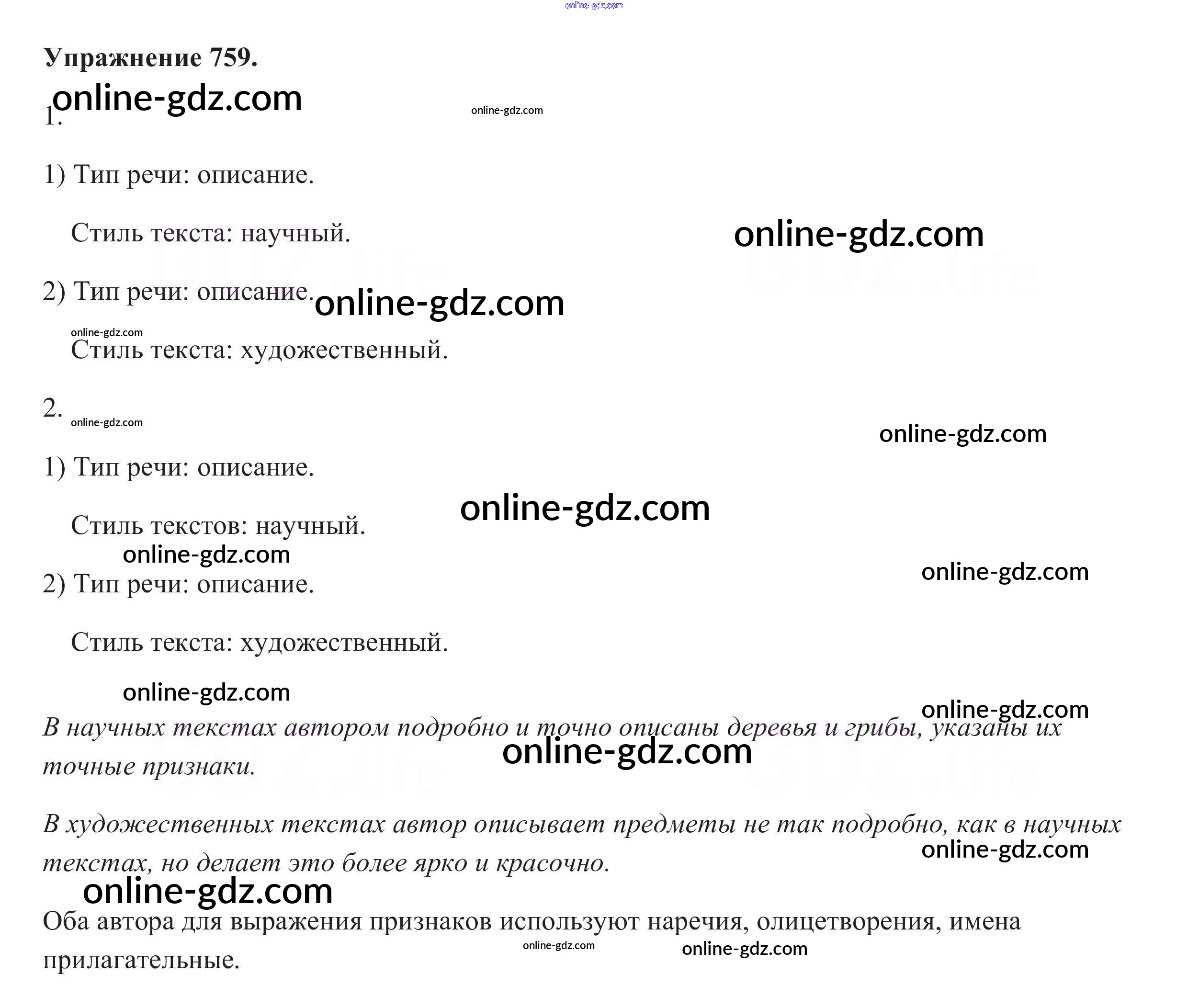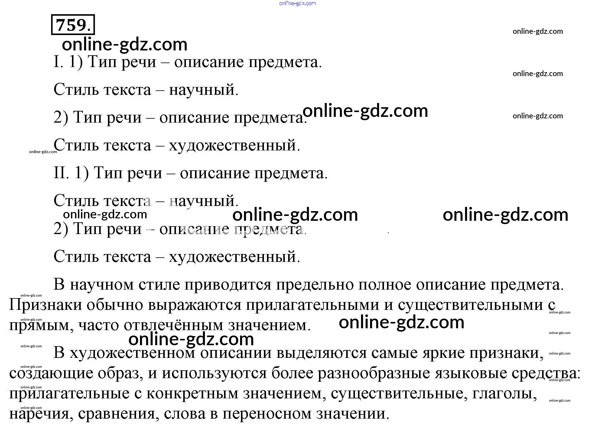 Готовые домашние задания по Русскому языку за 5 класс Учебник Разумовская, Львова 2014 - Упражнения 759