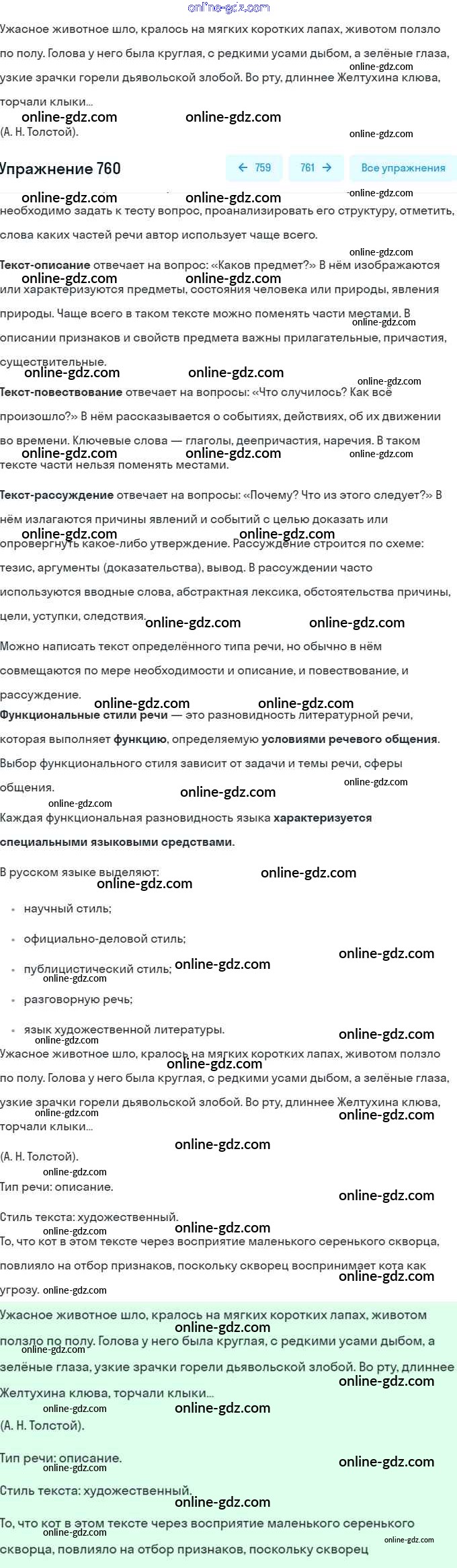 Готовые домашние задания по Русскому языку за 5 класс Учебник Разумовская, Львова 2014 - Упражнения 760