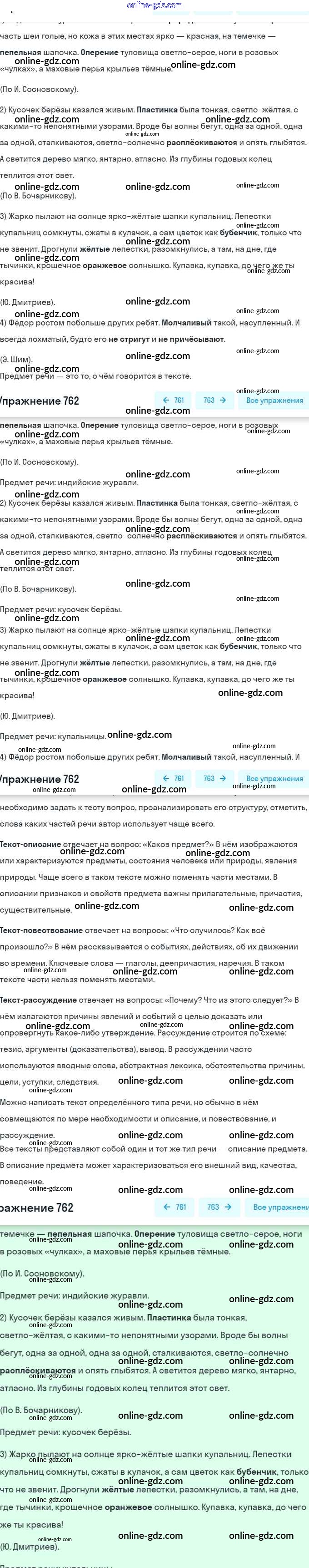 Готовые домашние задания по Русскому языку за 5 класс Учебник Разумовская, Львова 2014 - Упражнения 762