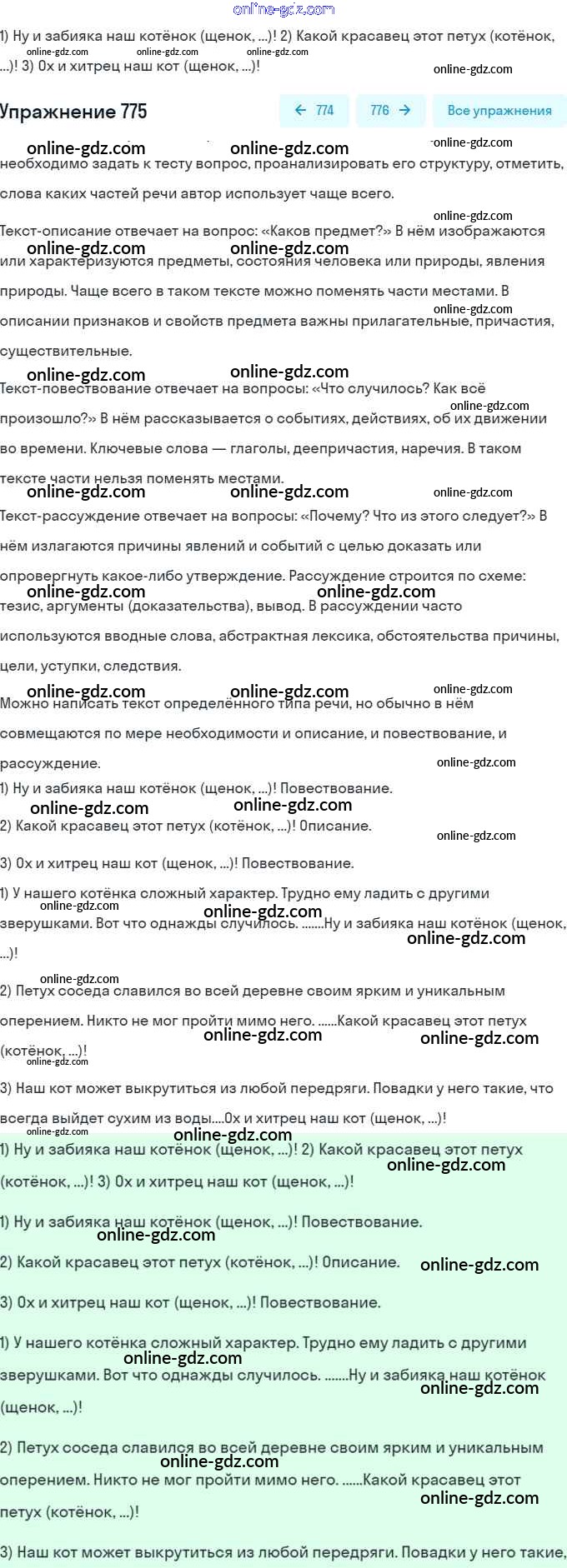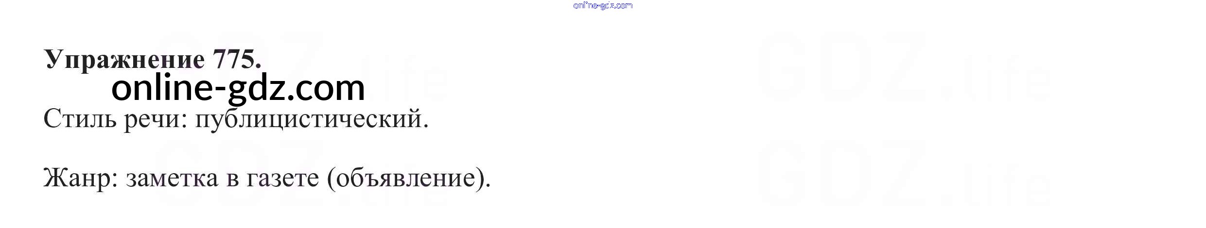 Готовые домашние задания по Русскому языку за 5 класс Учебник Разумовская, Львова 2014 - Упражнения 775