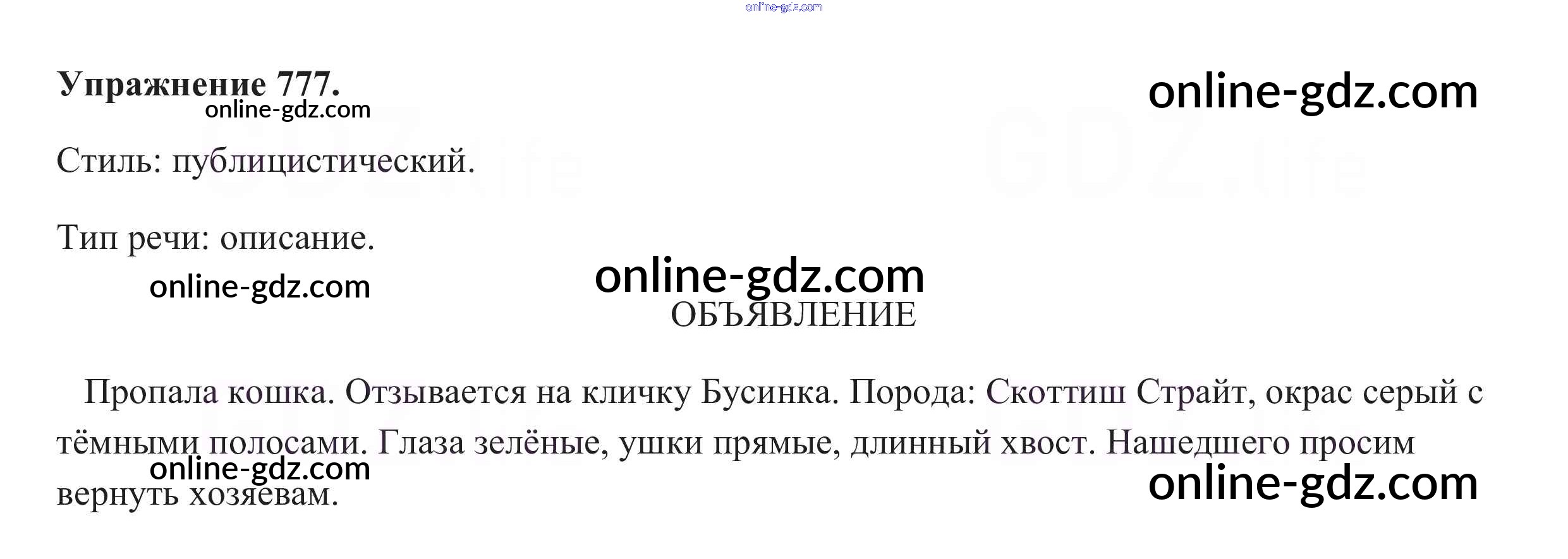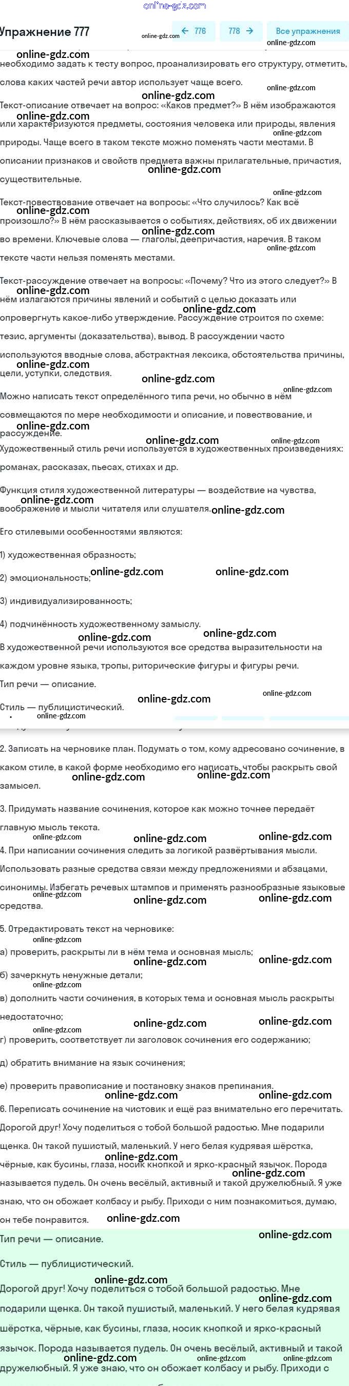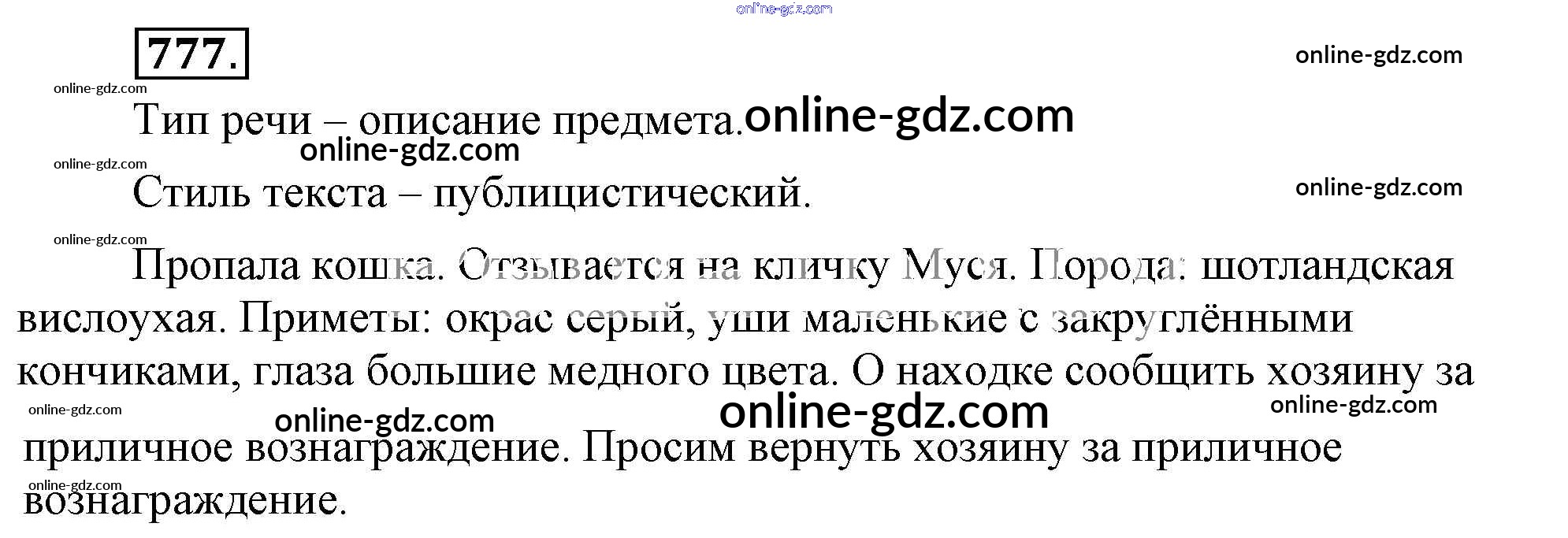 Готовые домашние задания по Русскому языку за 5 класс Учебник Разумовская, Львова 2014 - Упражнения 777