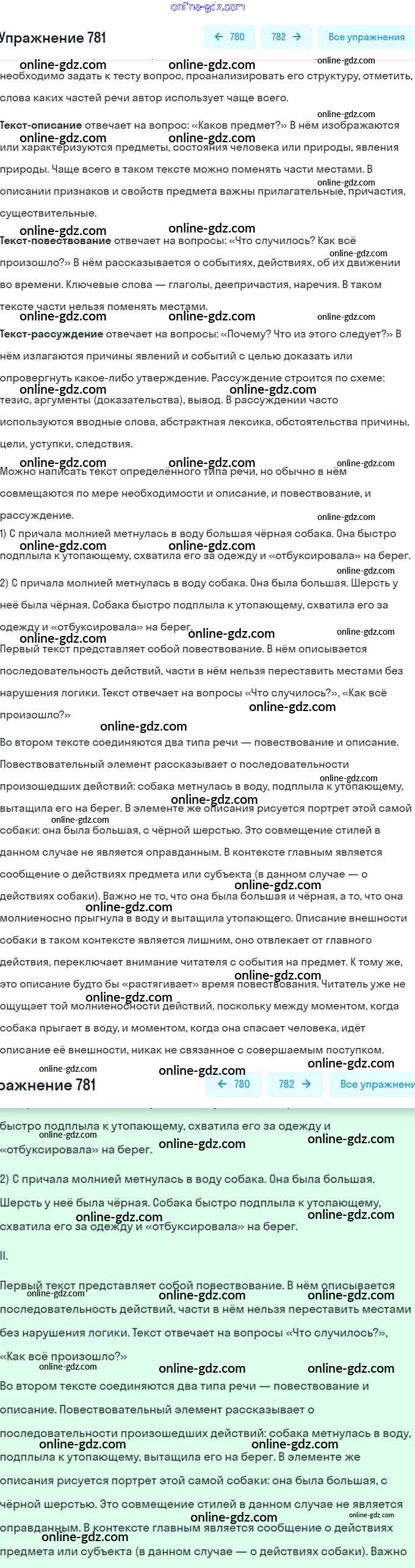 Готовые домашние задания по Русскому языку за 5 класс Учебник Разумовская, Львова 2014 - Упражнения 781