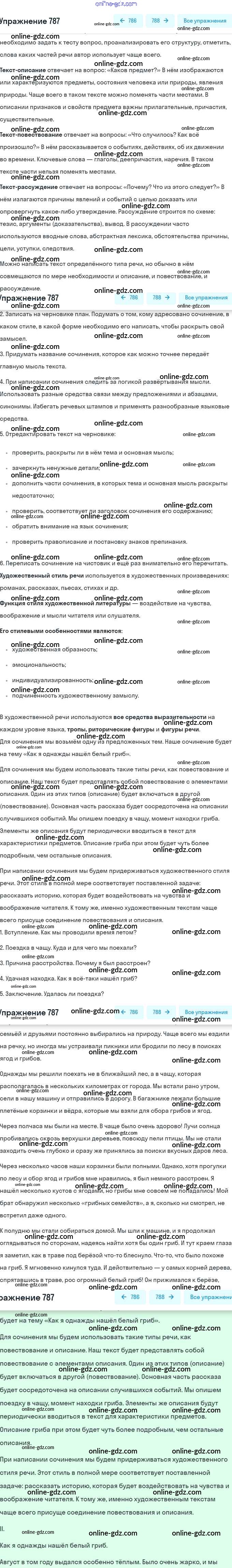 Готовые домашние задания по Русскому языку за 5 класс Учебник Разумовская, Львова 2014 - Упражнения 787