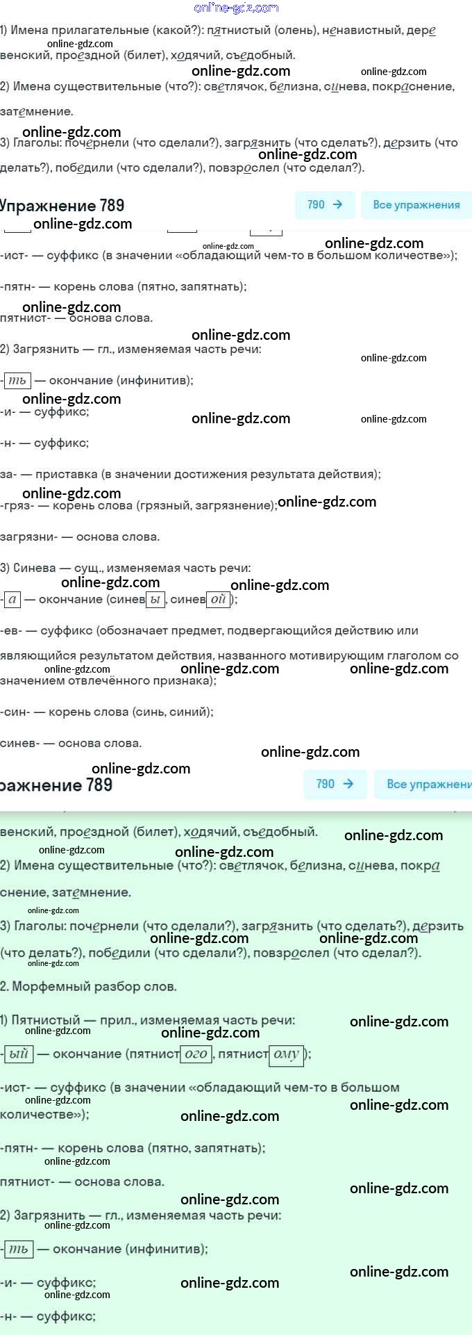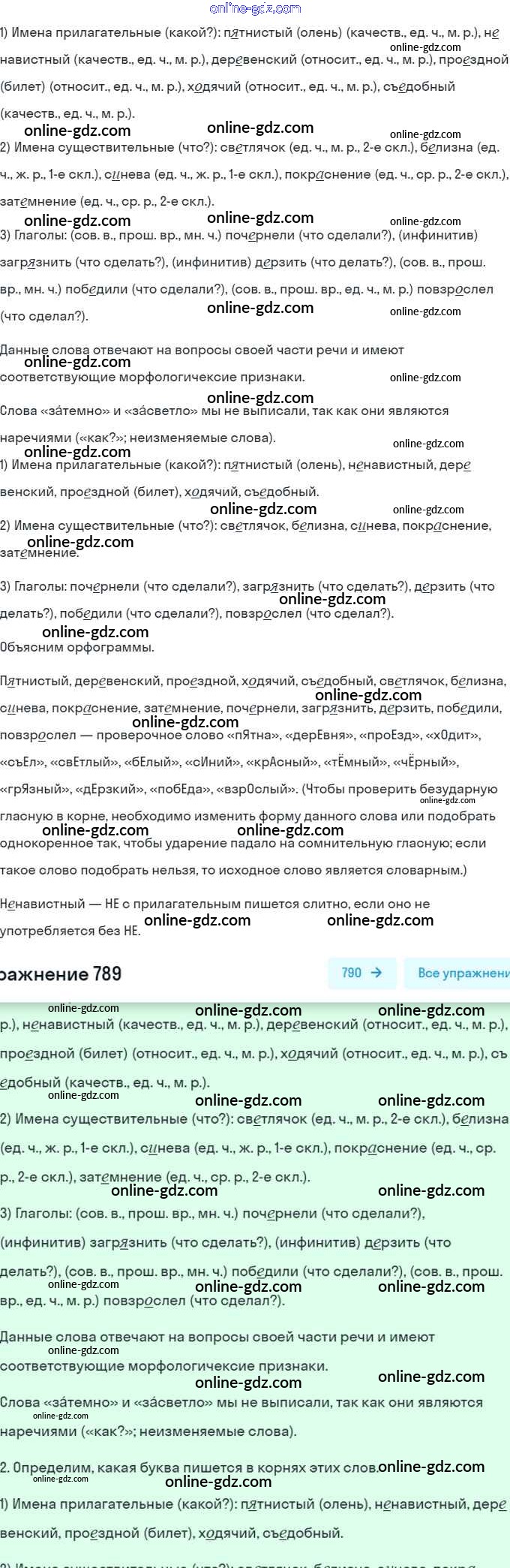Готовые домашние задания по Русскому языку за 5 класс Учебник Разумовская, Львова 2014 - Упражнения 789