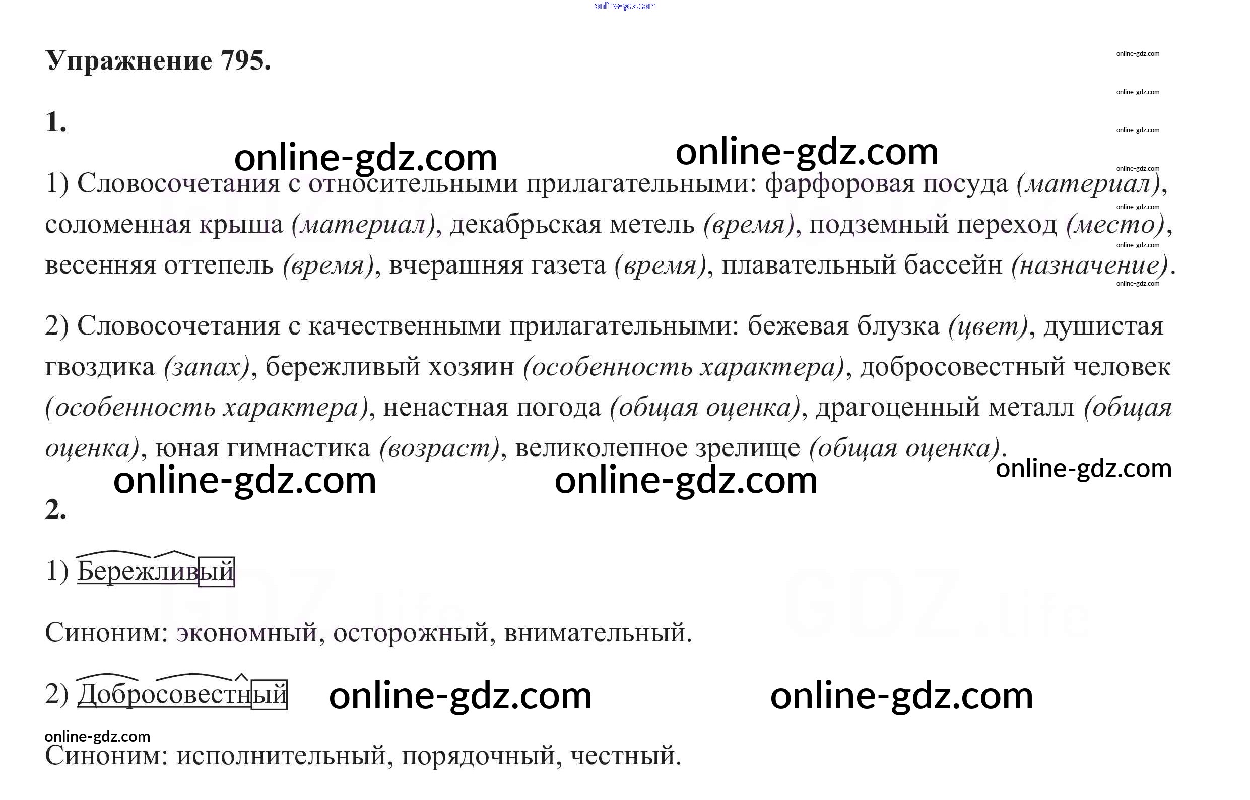 Готовые домашние задания по Русскому языку за 5 класс Учебник Разумовская, Львова 2014 - Упражнения 795