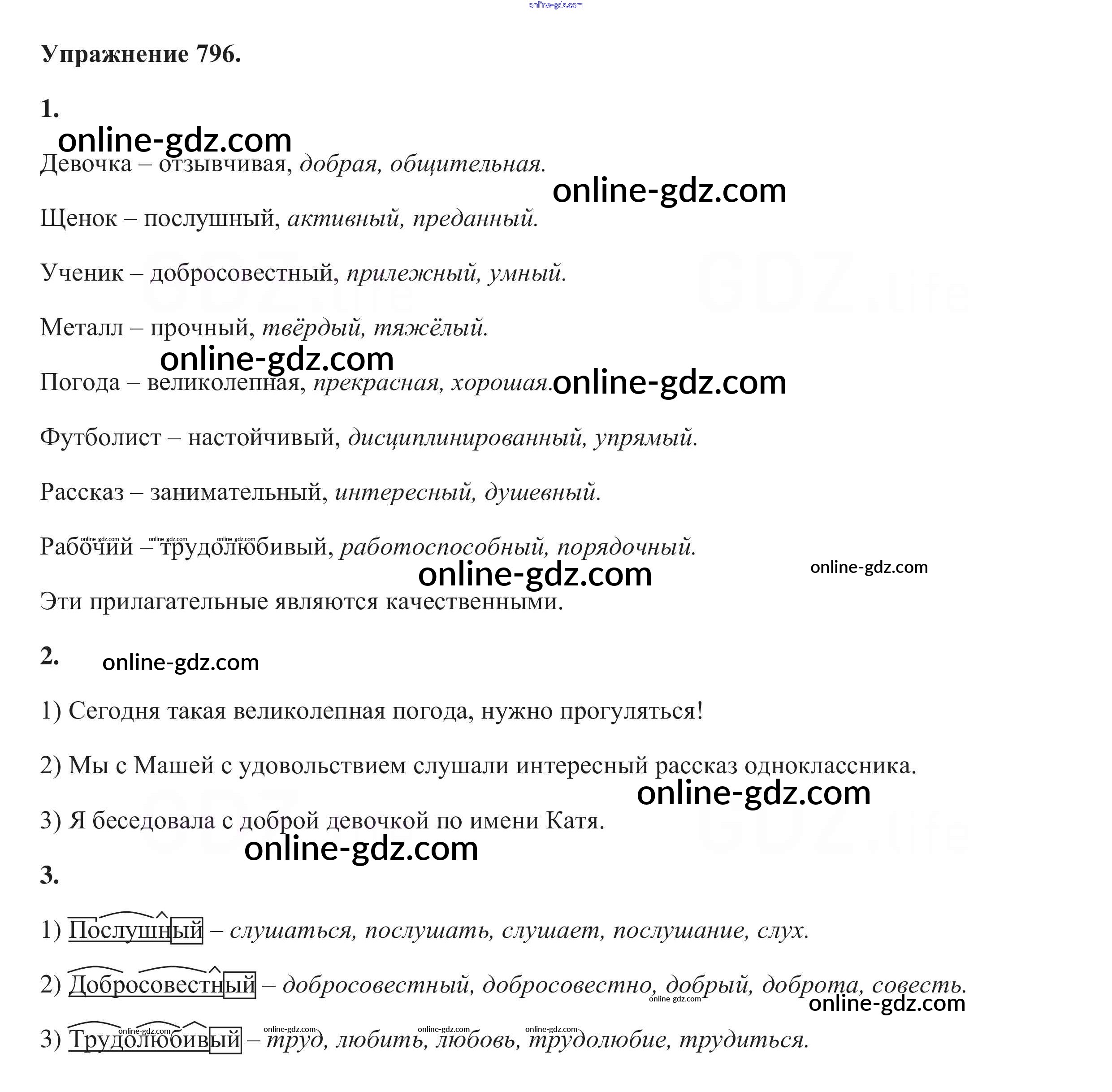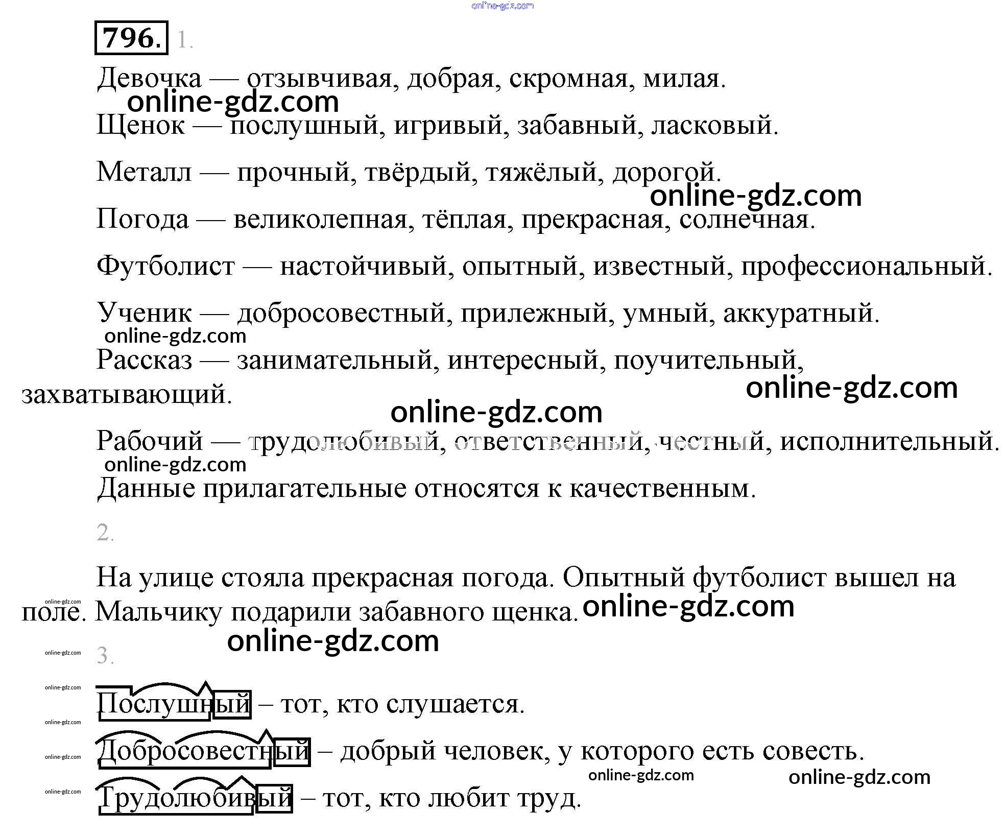 Готовые домашние задания по Русскому языку за 5 класс Учебник Разумовская, Львова 2014 - Упражнения 796