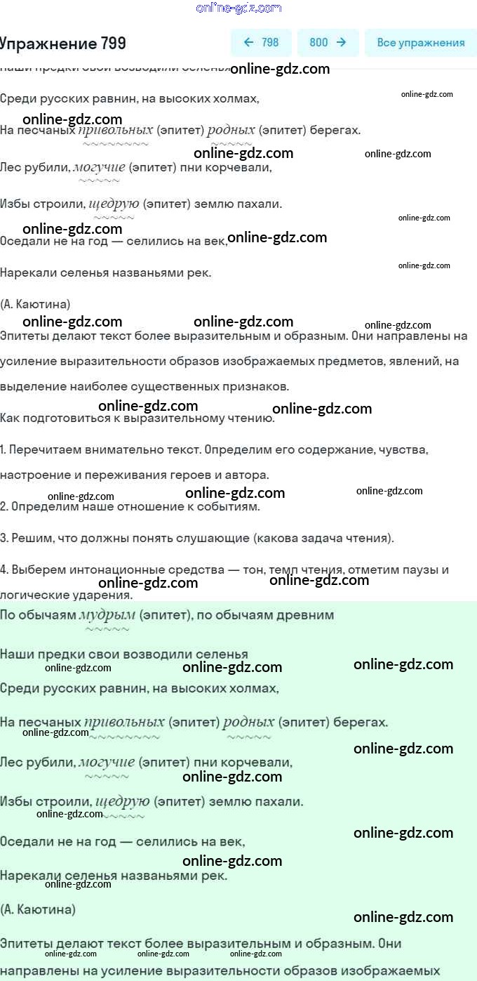Готовые домашние задания по Русскому языку за 5 класс Учебник Разумовская, Львова 2014 - Упражнения 799