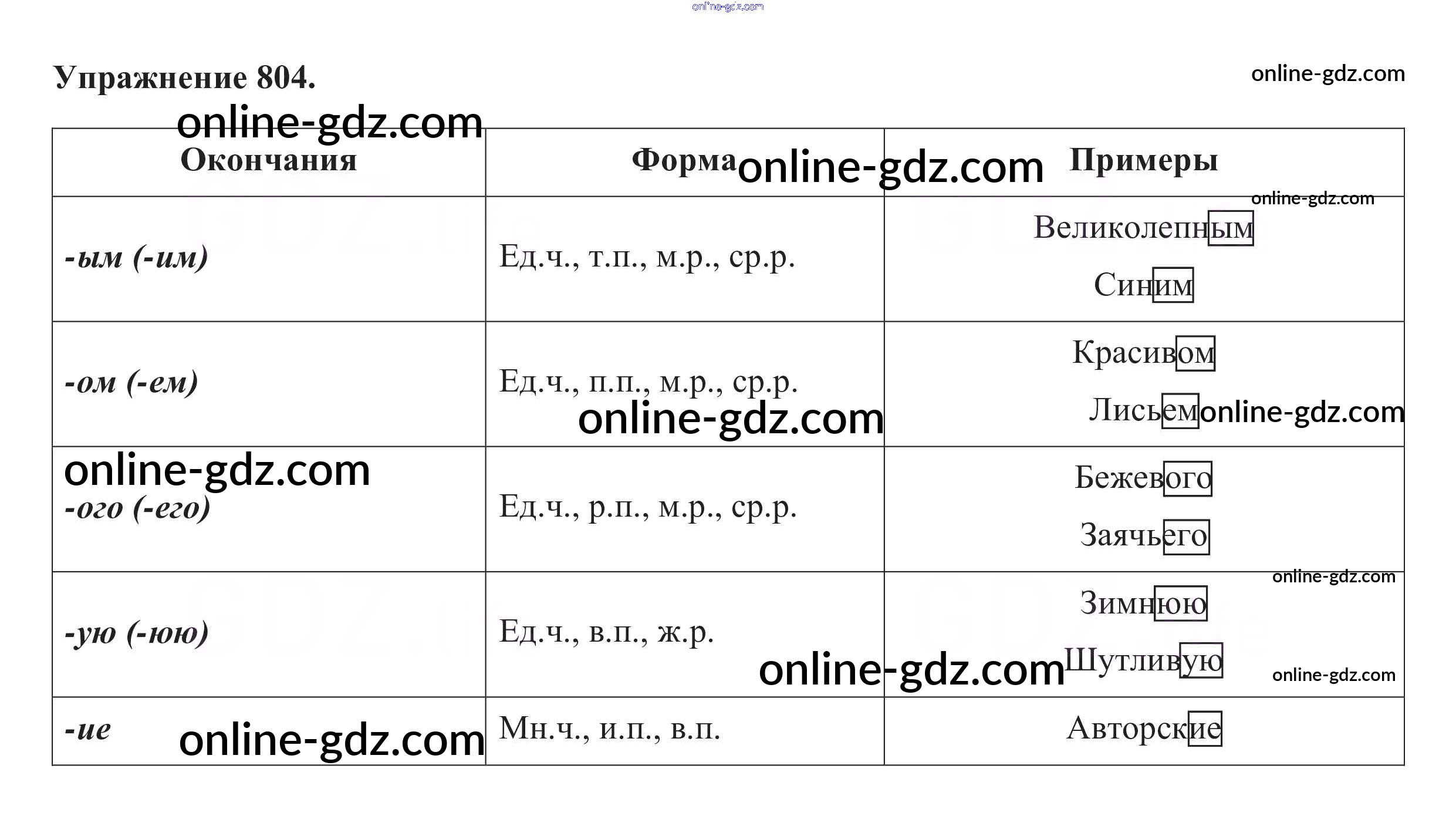 Готовые домашние задания по Русскому языку за 5 класс Учебник Разумовская, Львова 2014 - Упражнения 804