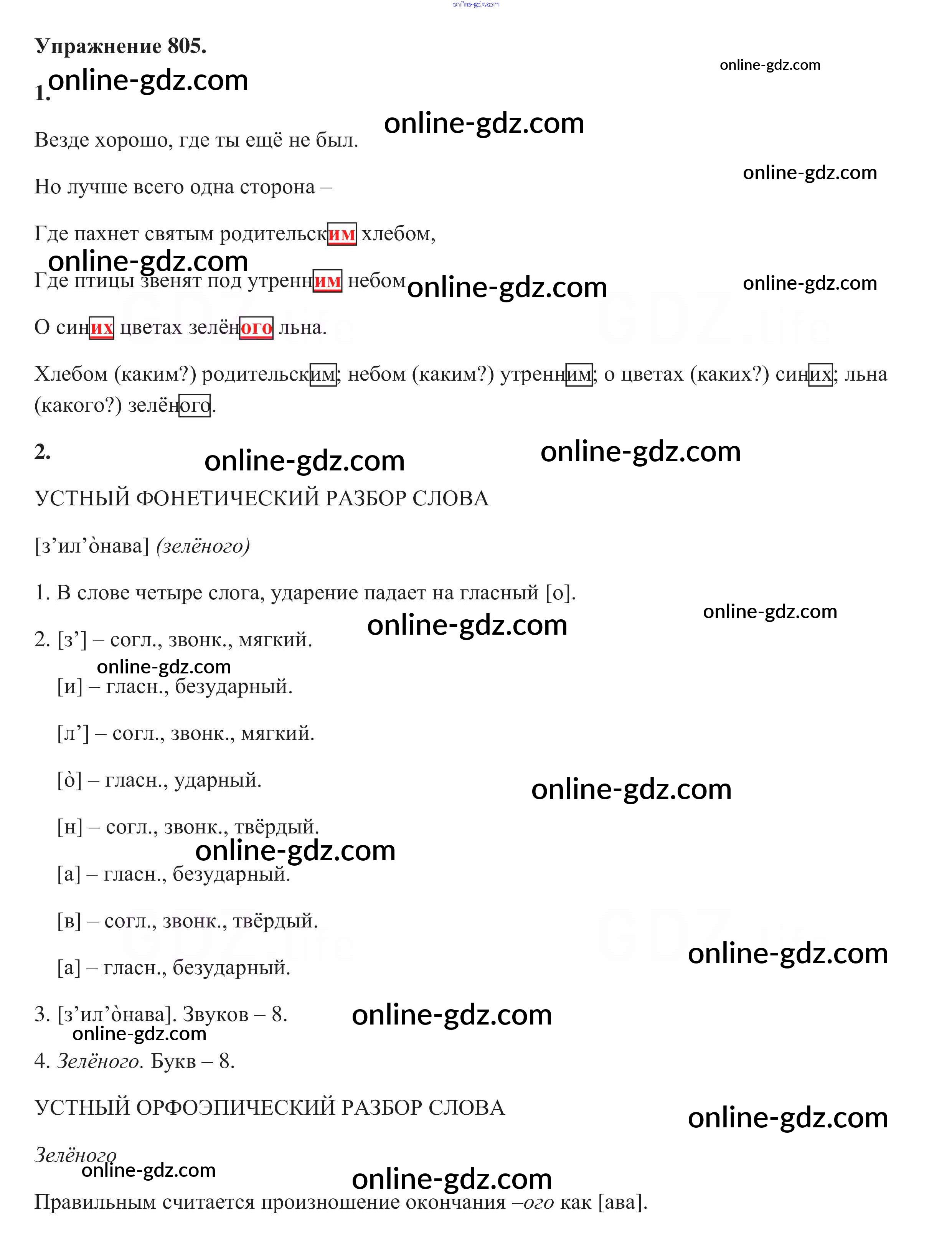 Готовые домашние задания по Русскому языку за 5 класс Учебник Разумовская, Львова 2014 - Упражнения 805