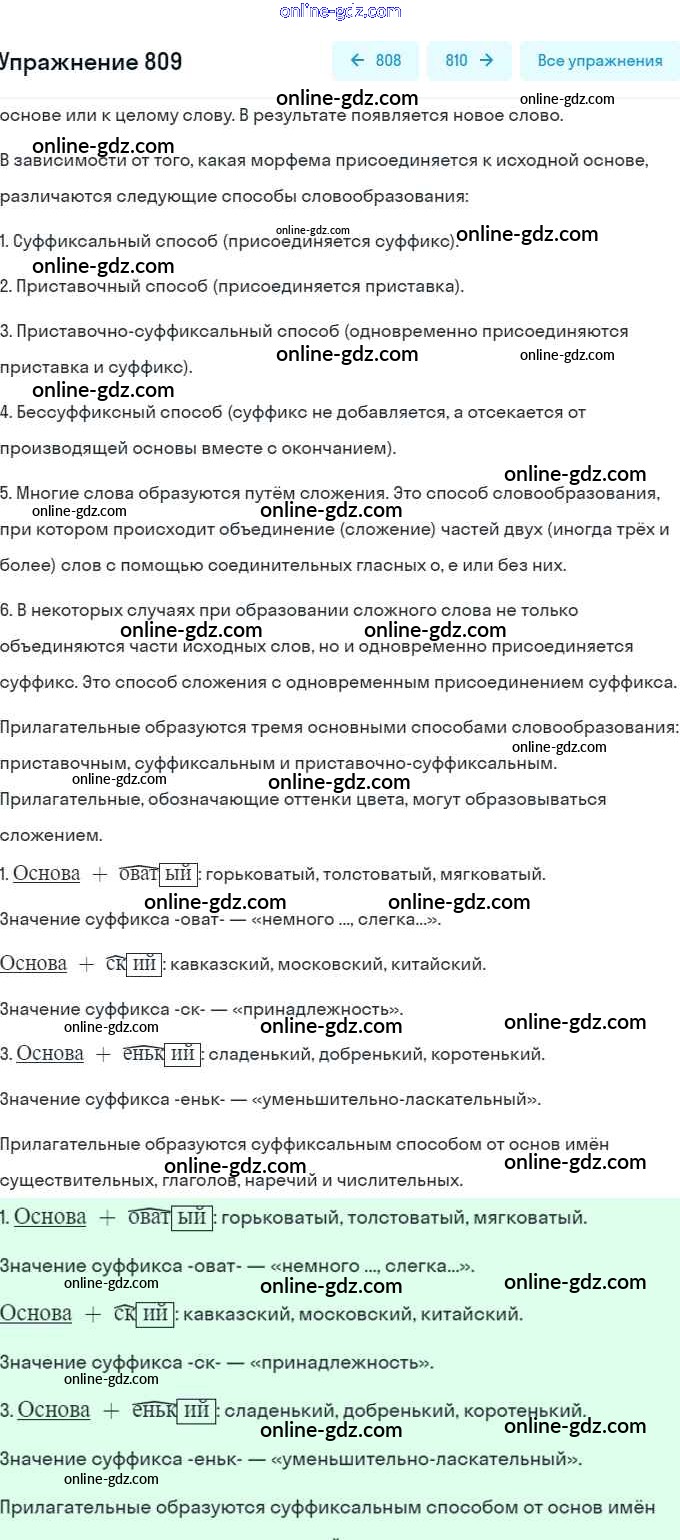Готовые домашние задания по Русскому языку за 5 класс Учебник Разумовская, Львова 2014 - Упражнения 809