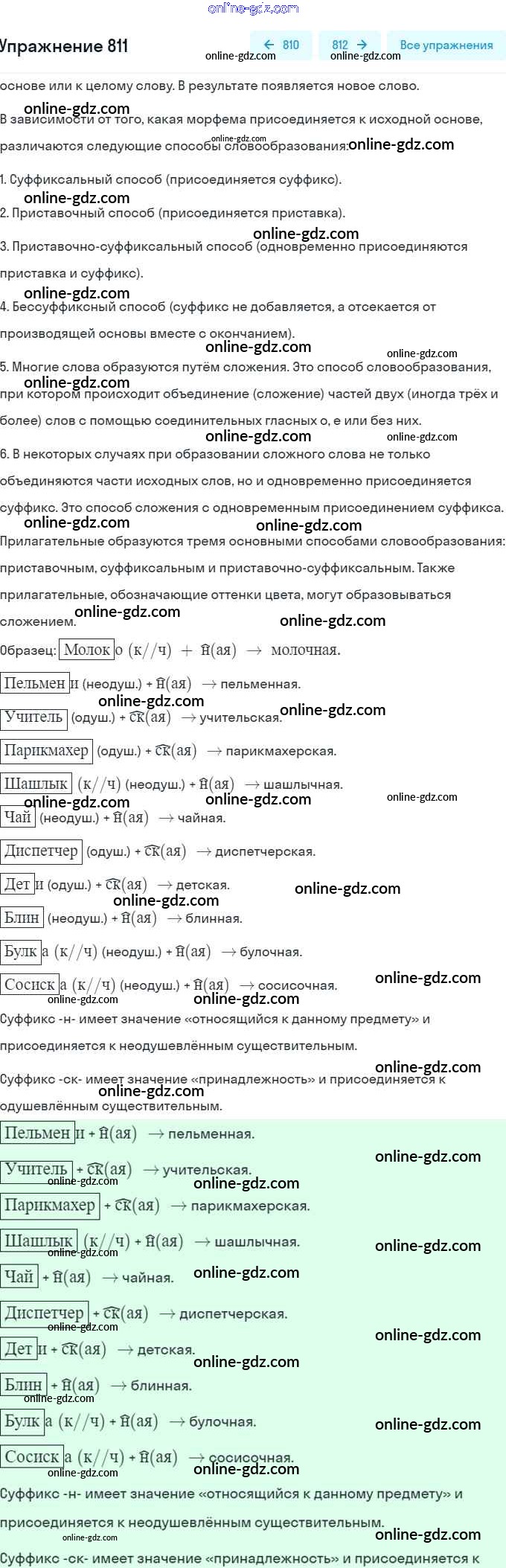Готовые домашние задания по Русскому языку за 5 класс Учебник Разумовская, Львова 2014 - Упражнения 811