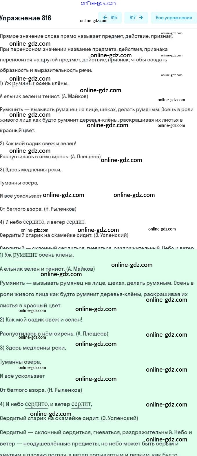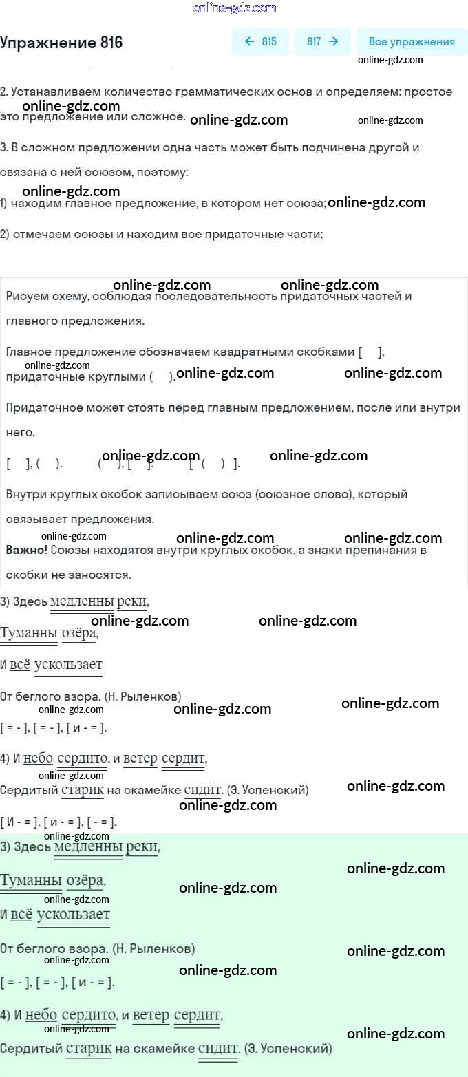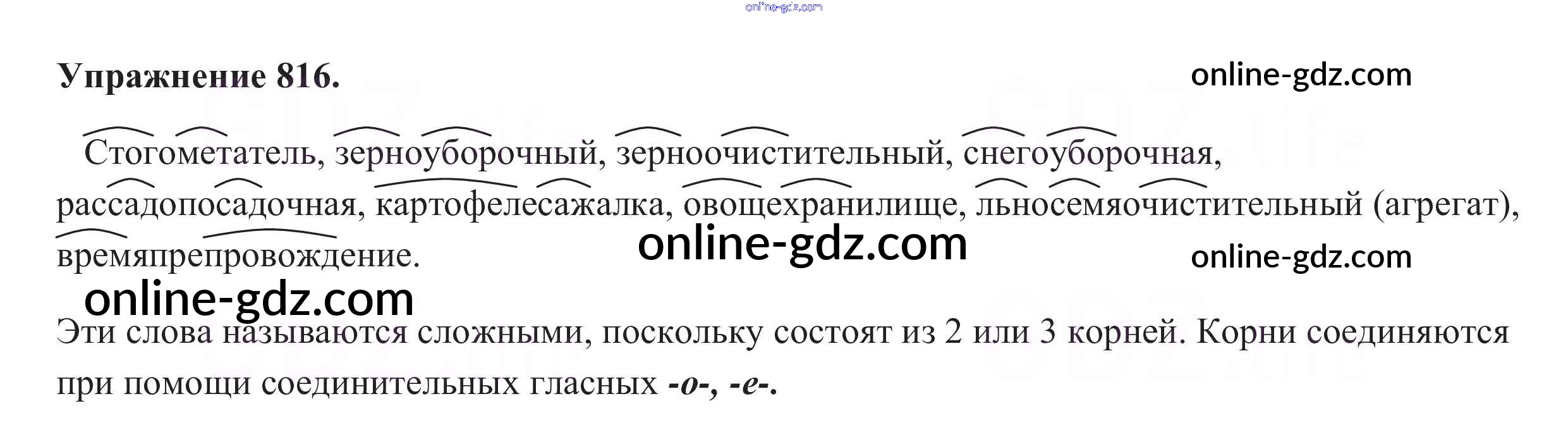Готовые домашние задания по Русскому языку за 5 класс Учебник Разумовская, Львова 2014 - Упражнения 816