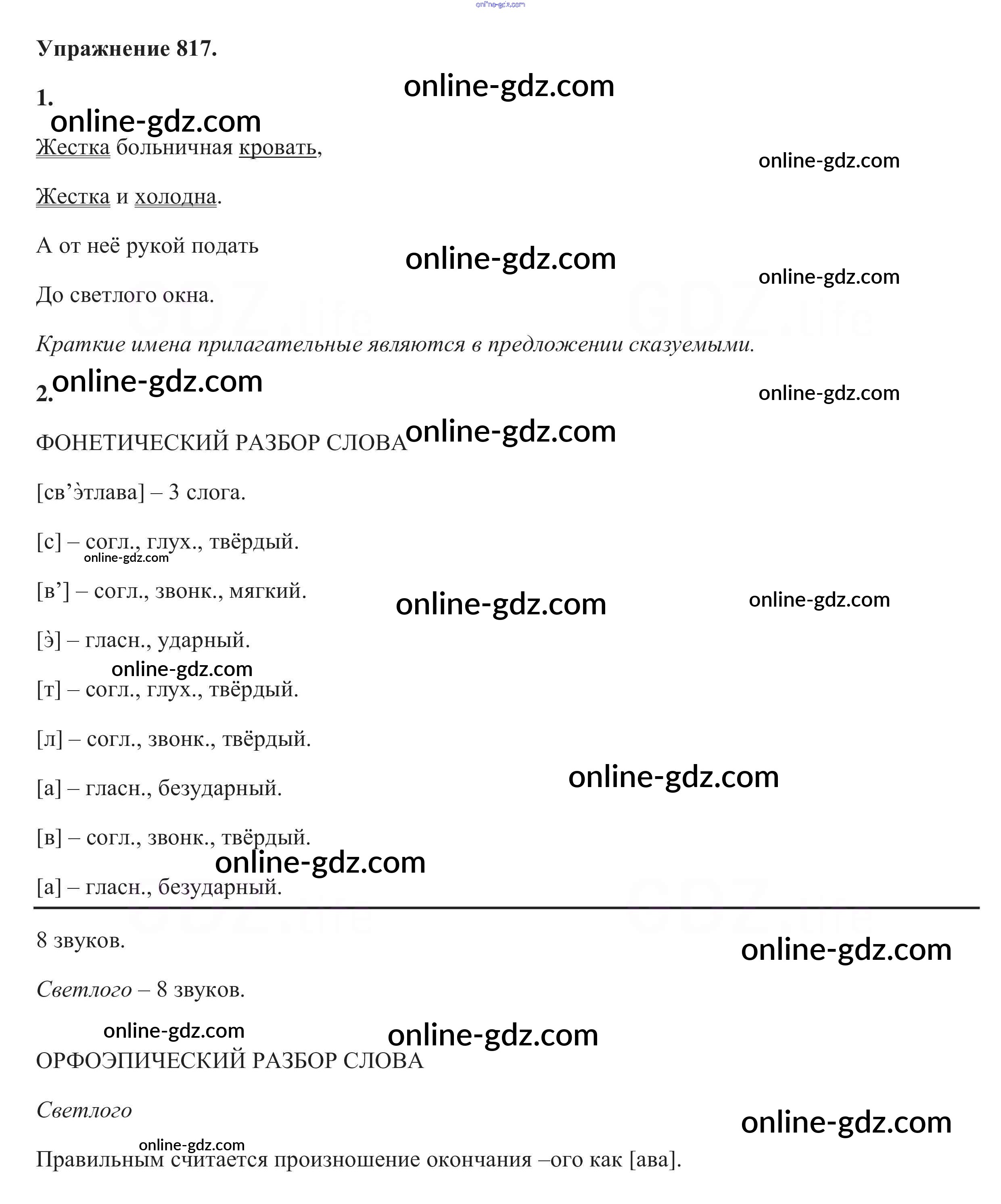 Готовые домашние задания по Русскому языку за 5 класс Учебник Разумовская, Львова 2014 - Упражнения 817