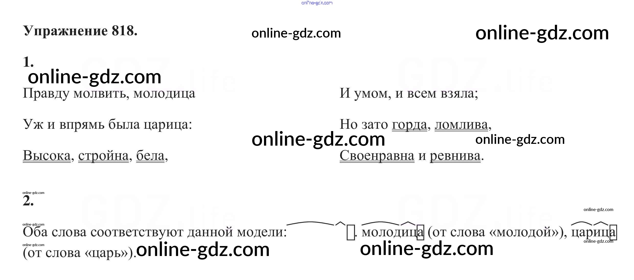 Готовые домашние задания по Русскому языку за 5 класс Учебник Разумовская, Львова 2014 - Упражнения 818