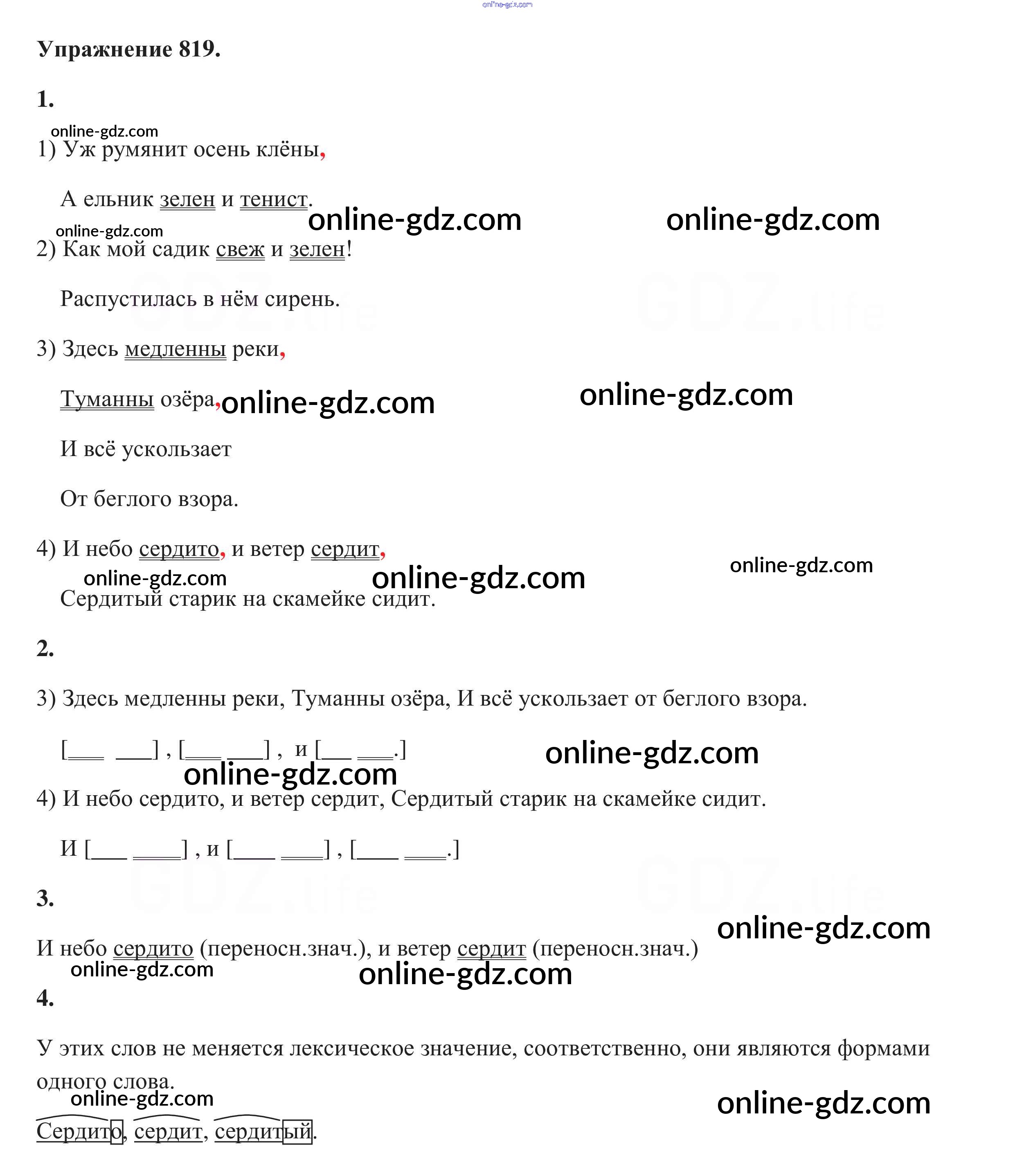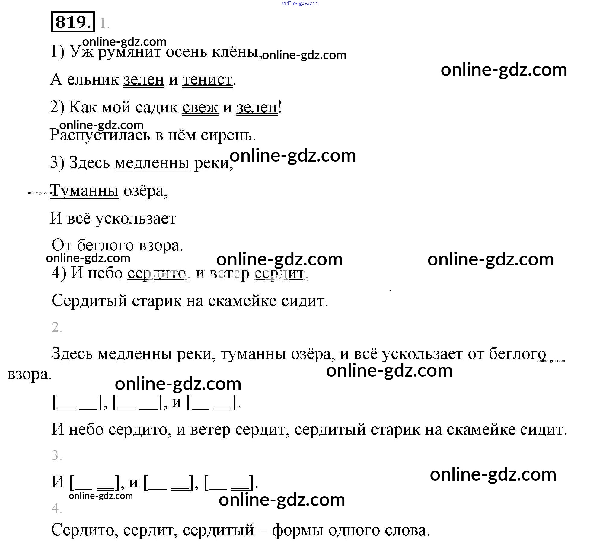 Готовые домашние задания по Русскому языку за 5 класс Учебник Разумовская, Львова 2014 - Упражнения 819
