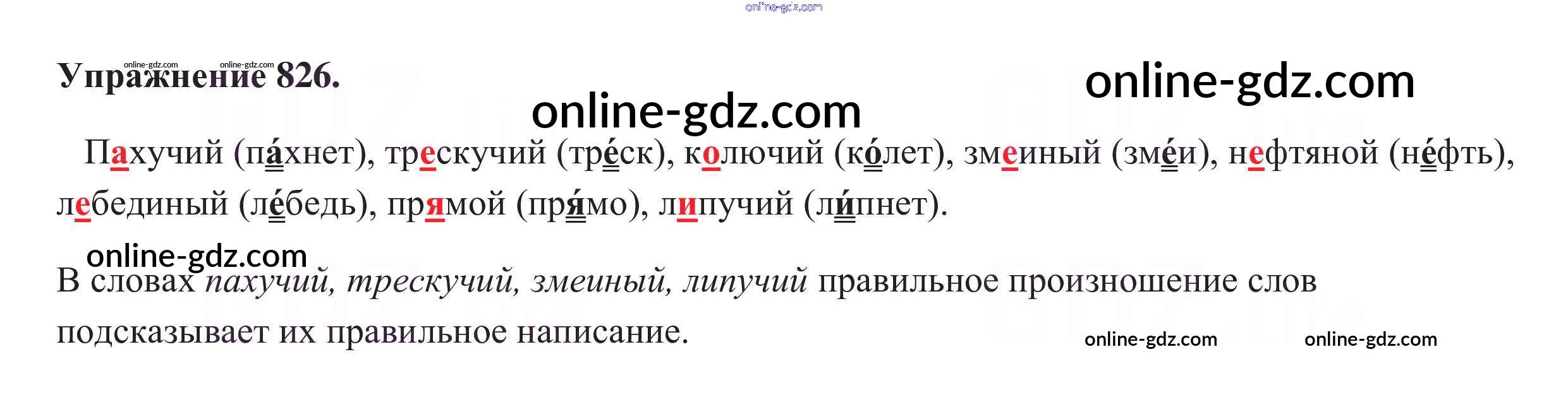 Готовые домашние задания по Русскому языку за 5 класс Учебник Разумовская, Львова 2014 - Упражнения 826