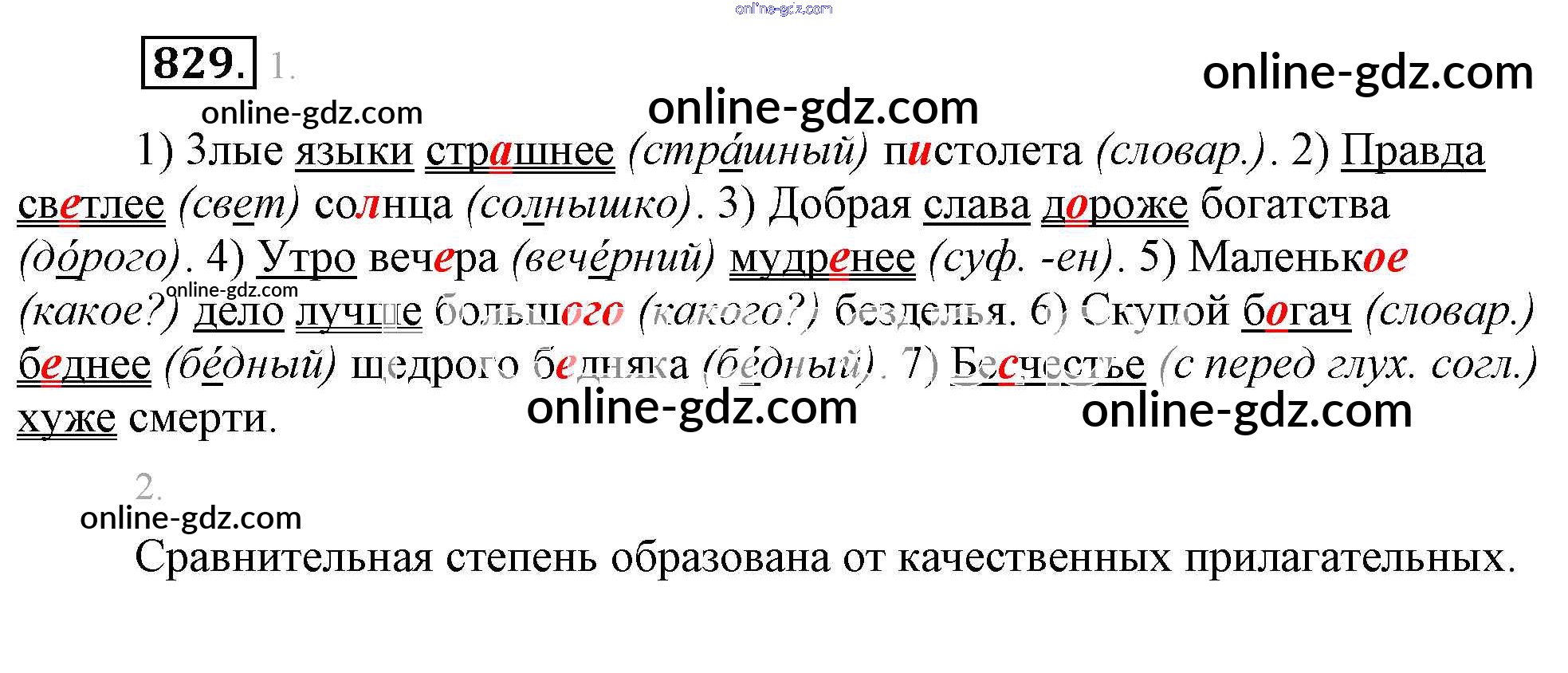 Готовые домашние задания по Русскому языку за 5 класс Учебник Разумовская, Львова 2014 - Упражнения 829