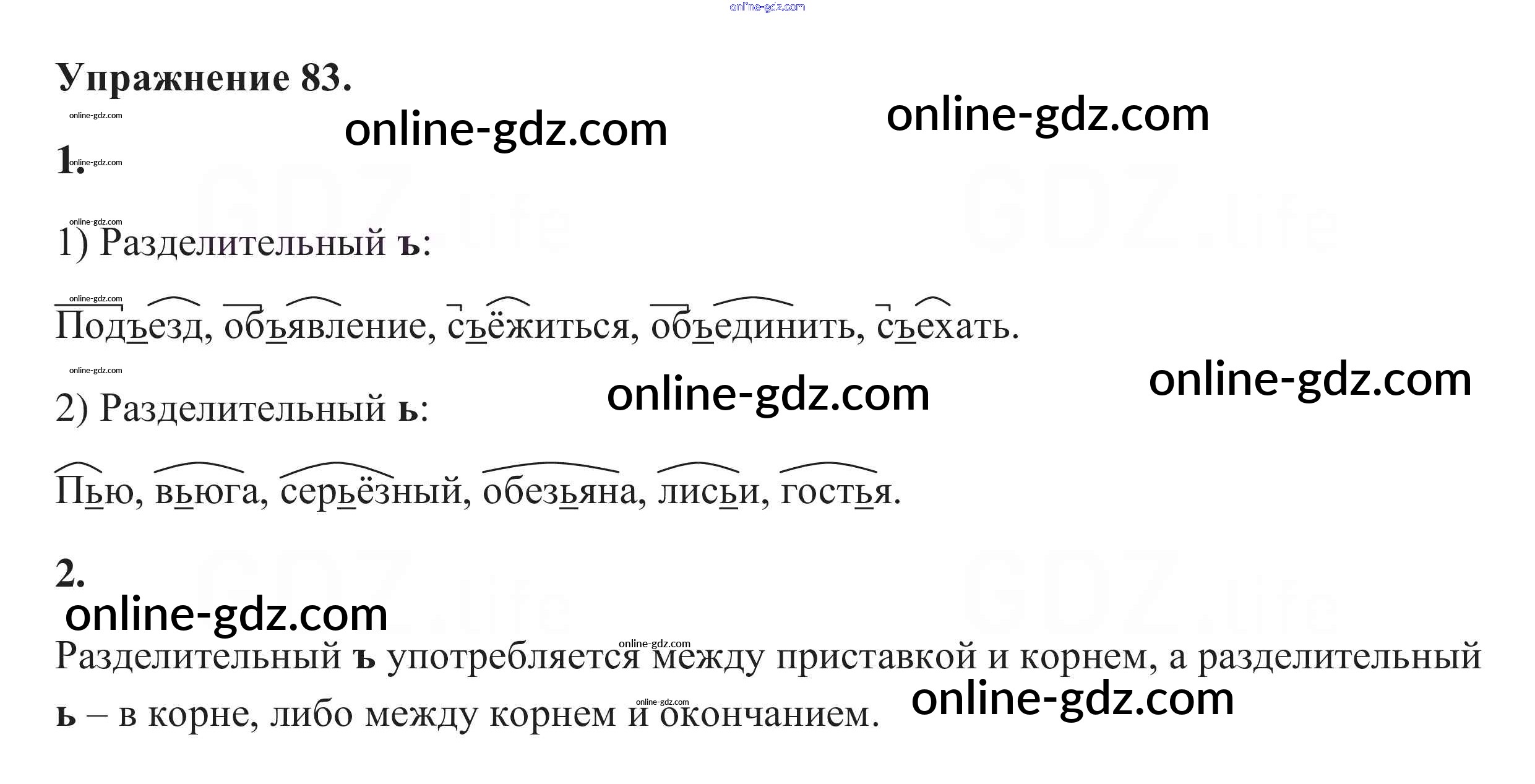 Готовые домашние задания по Русскому языку за 5 класс Учебник Разумовская, Львова 2014 - Упражнения 83