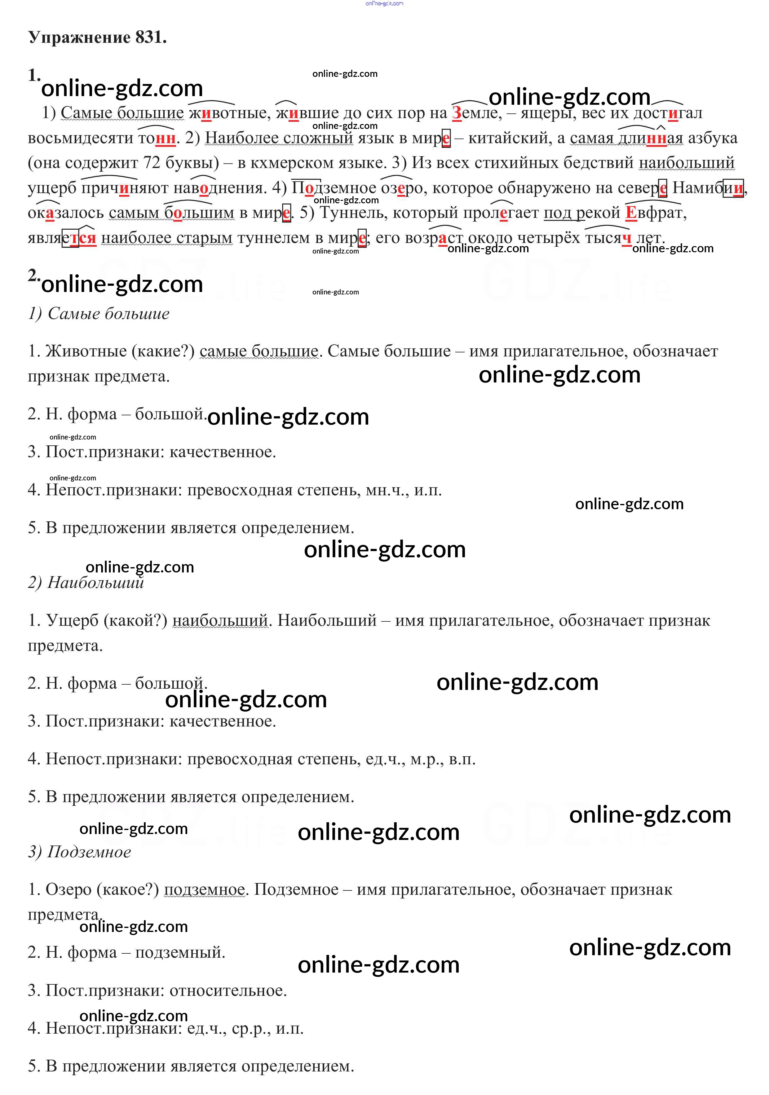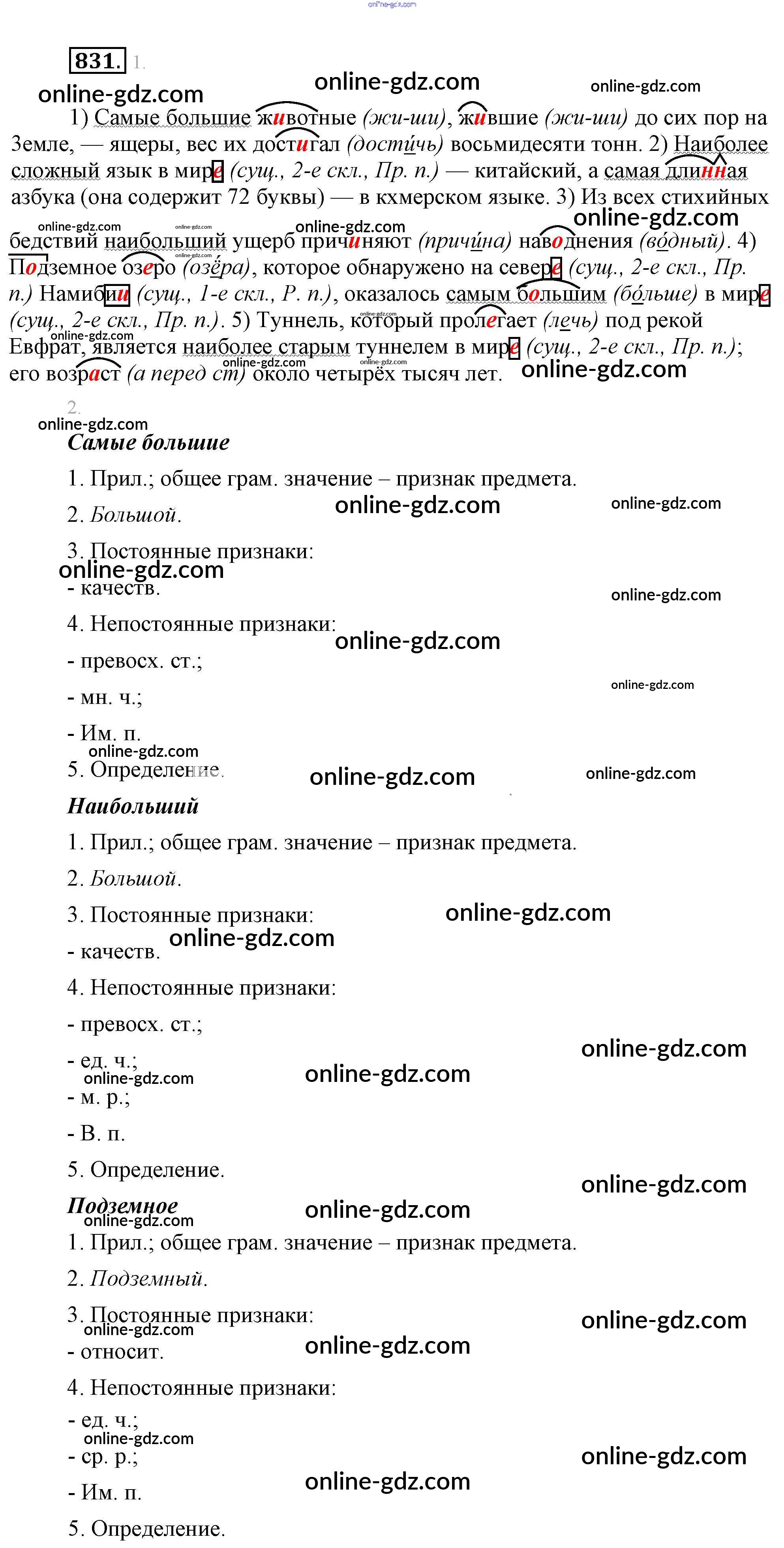 Готовые домашние задания по Русскому языку за 5 класс Учебник Разумовская, Львова 2014 - Упражнения 831