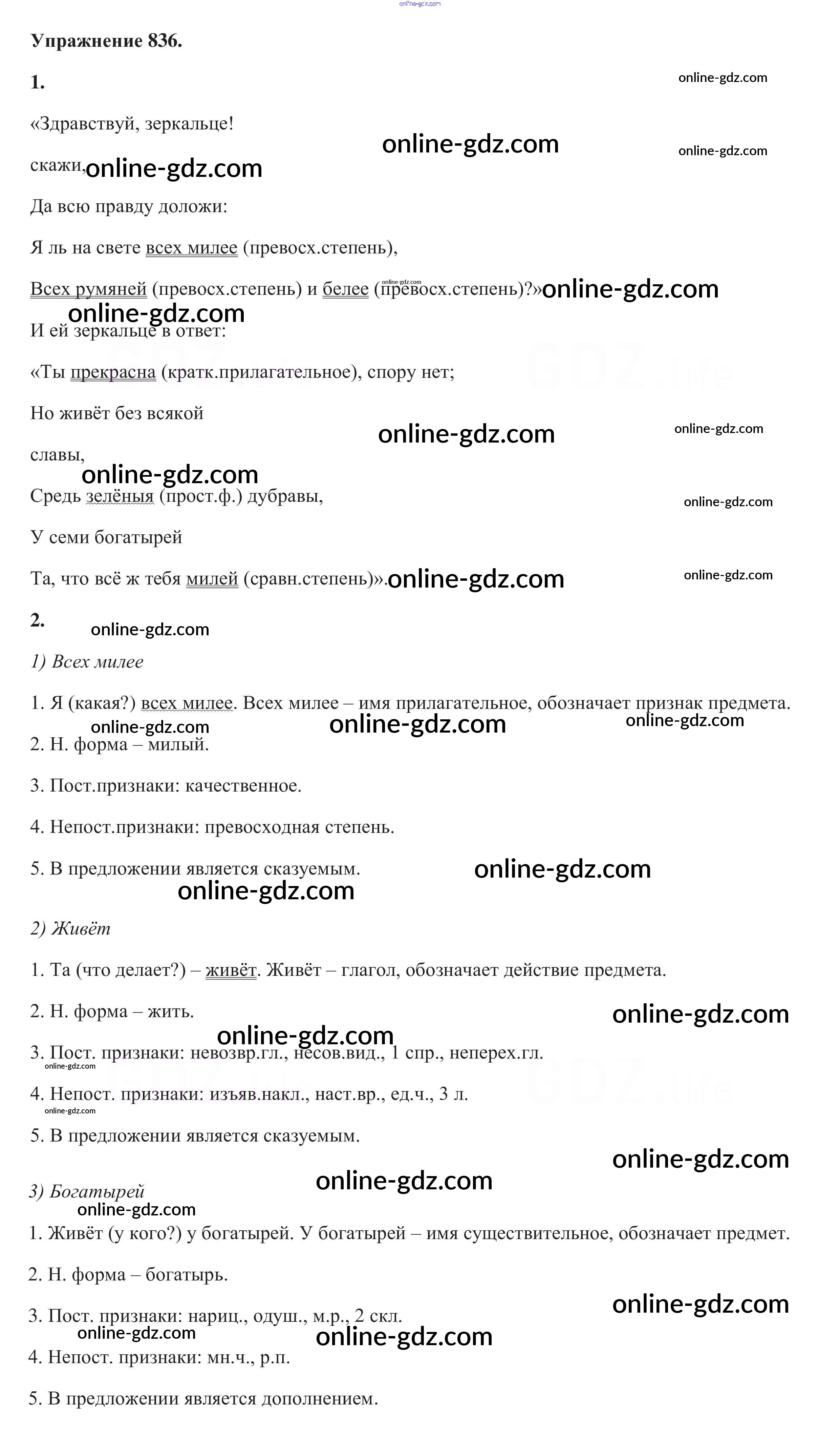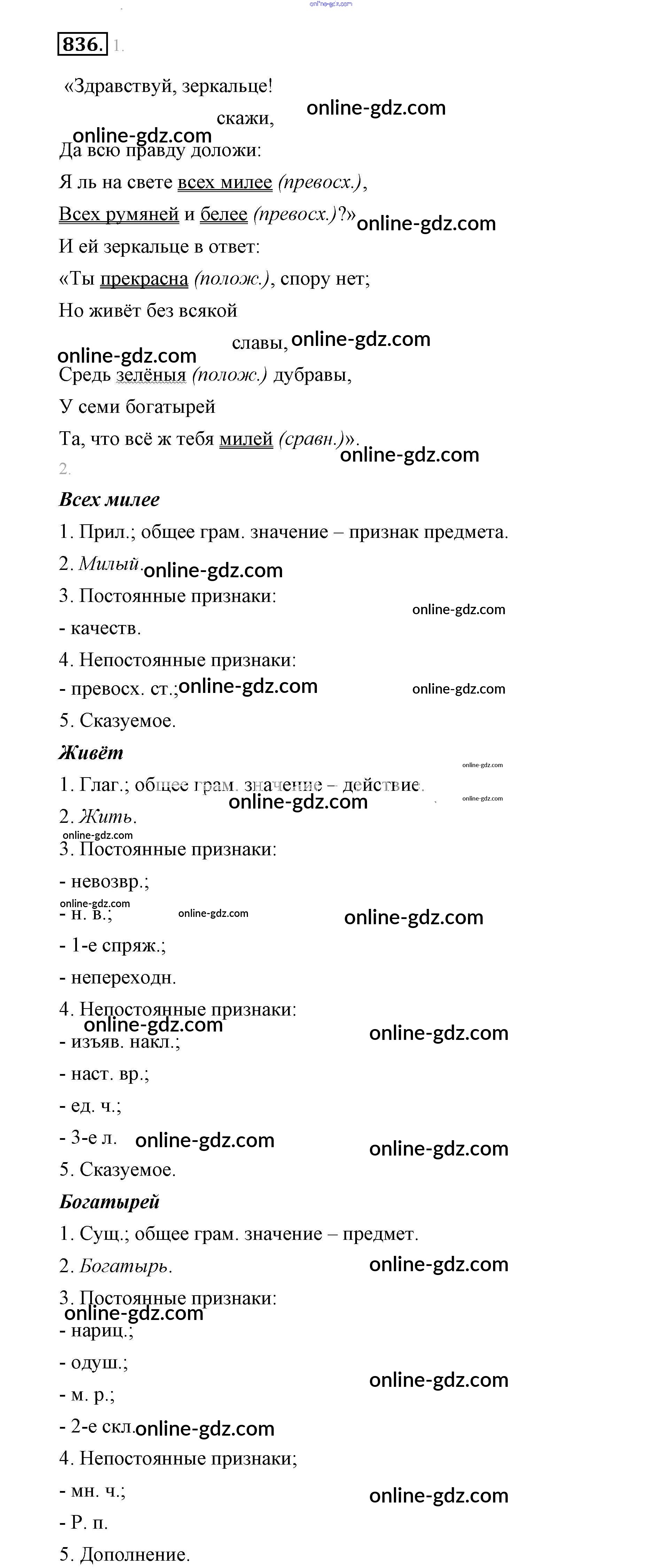 Готовые домашние задания по Русскому языку за 5 класс Учебник Разумовская, Львова 2014 - Упражнения 836