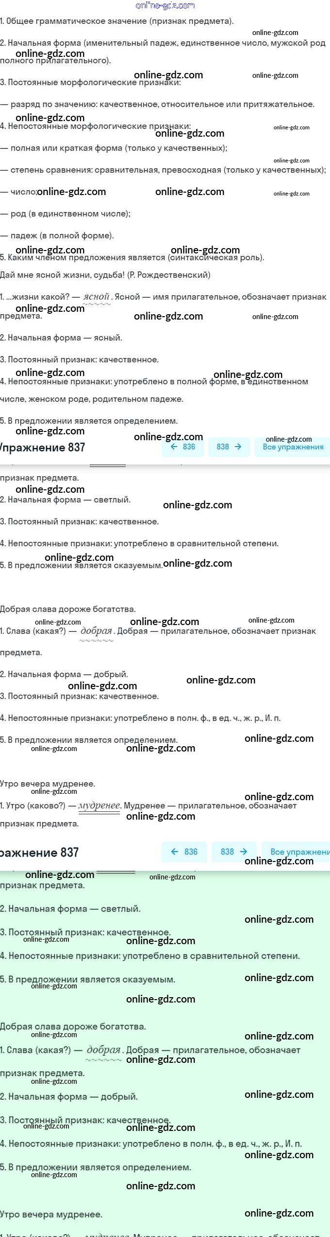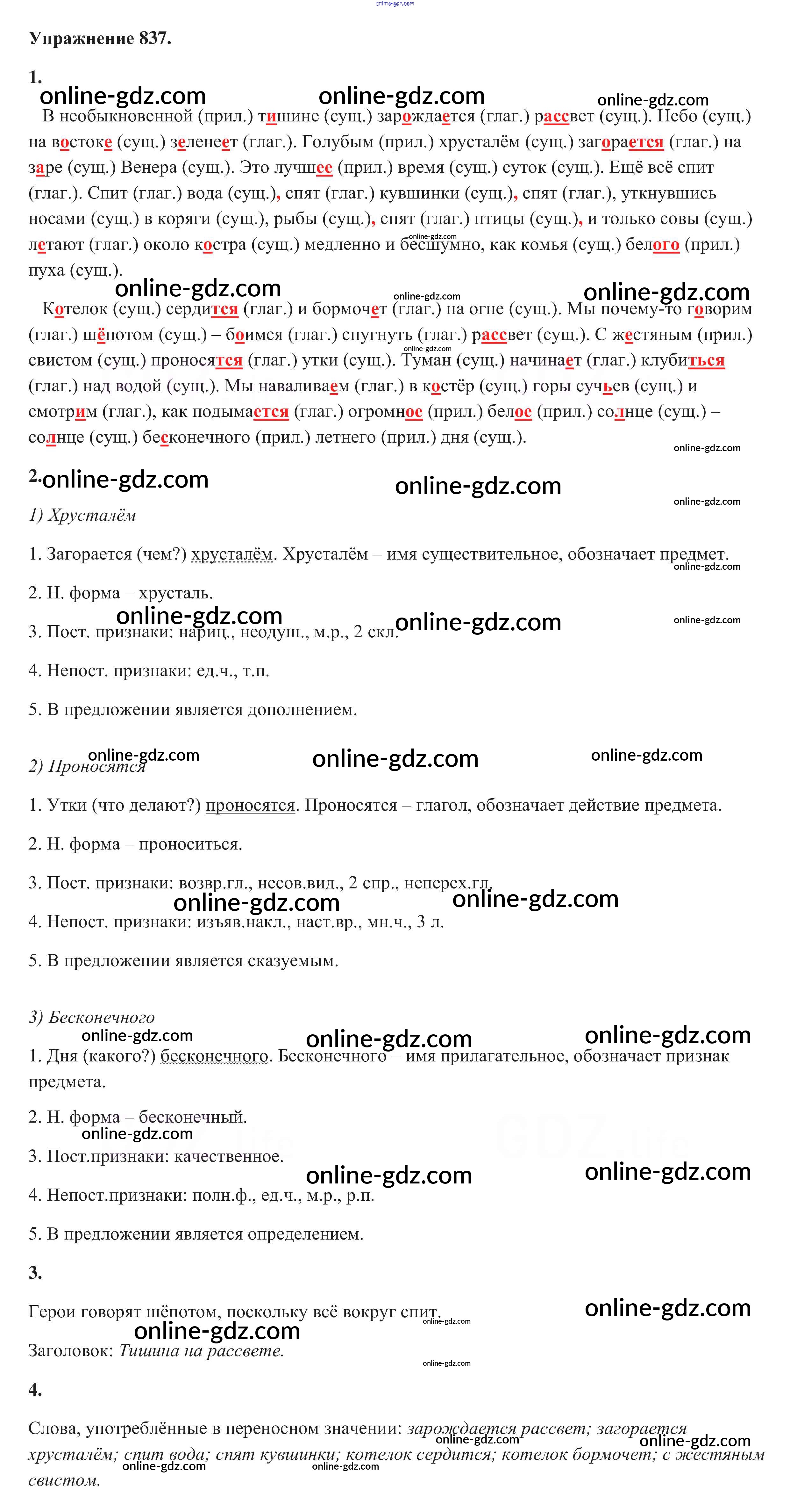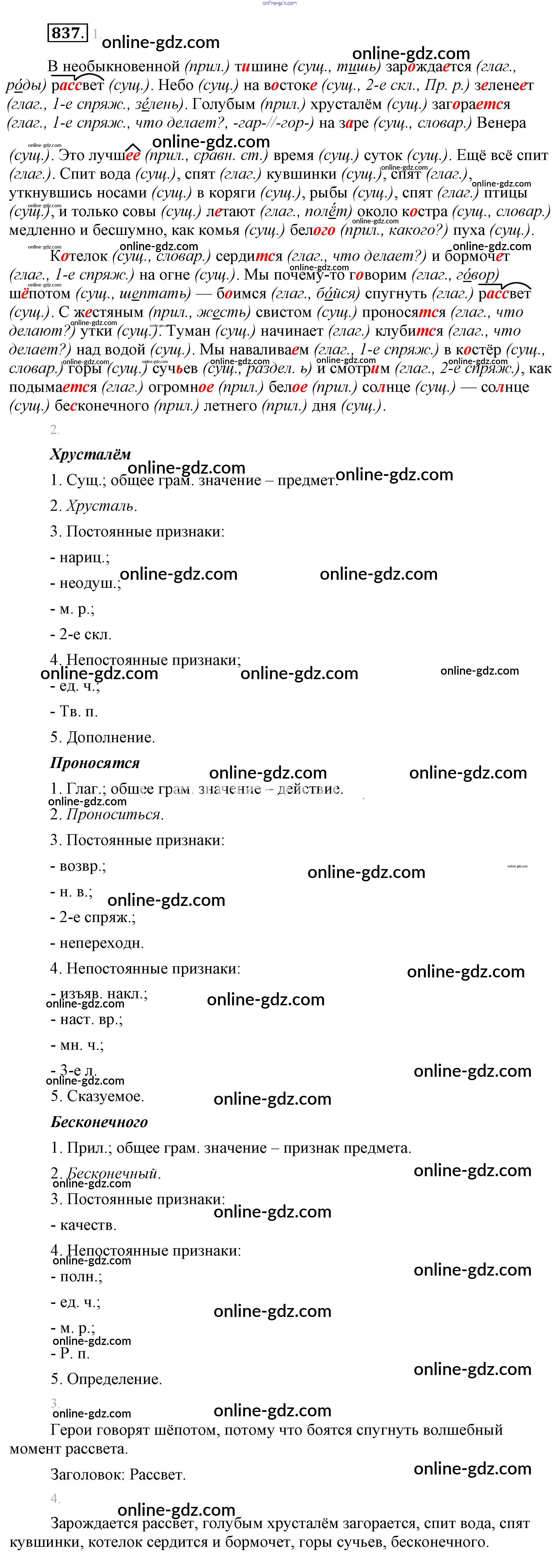 Готовые домашние задания по Русскому языку за 5 класс Учебник Разумовская, Львова 2014 - Упражнения 837
