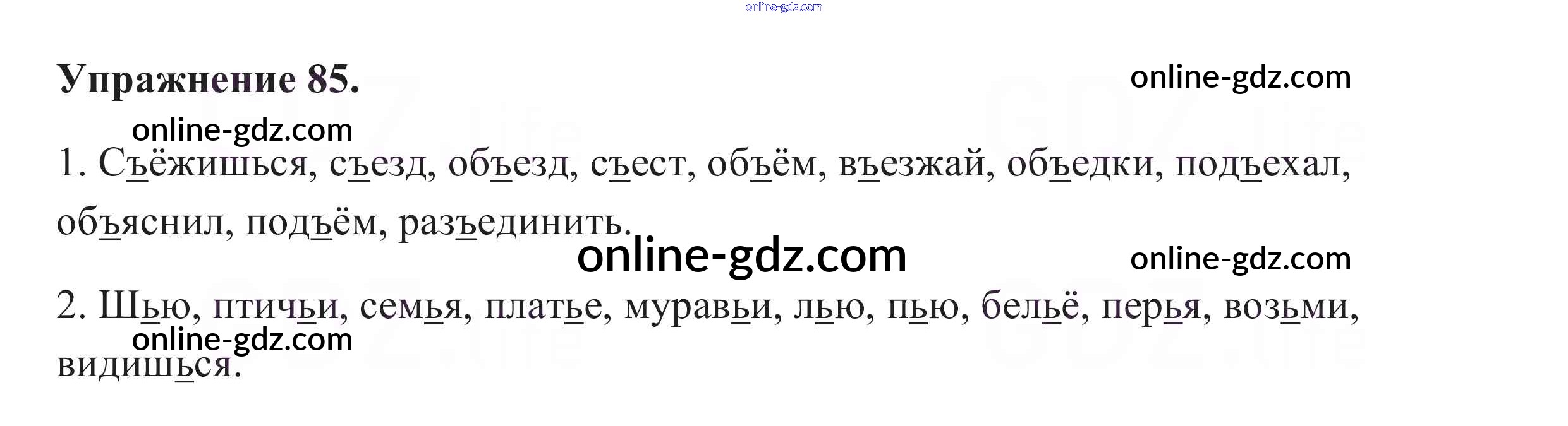 Готовые домашние задания по Русскому языку за 5 класс Учебник Разумовская, Львова 2014 - Упражнения 85