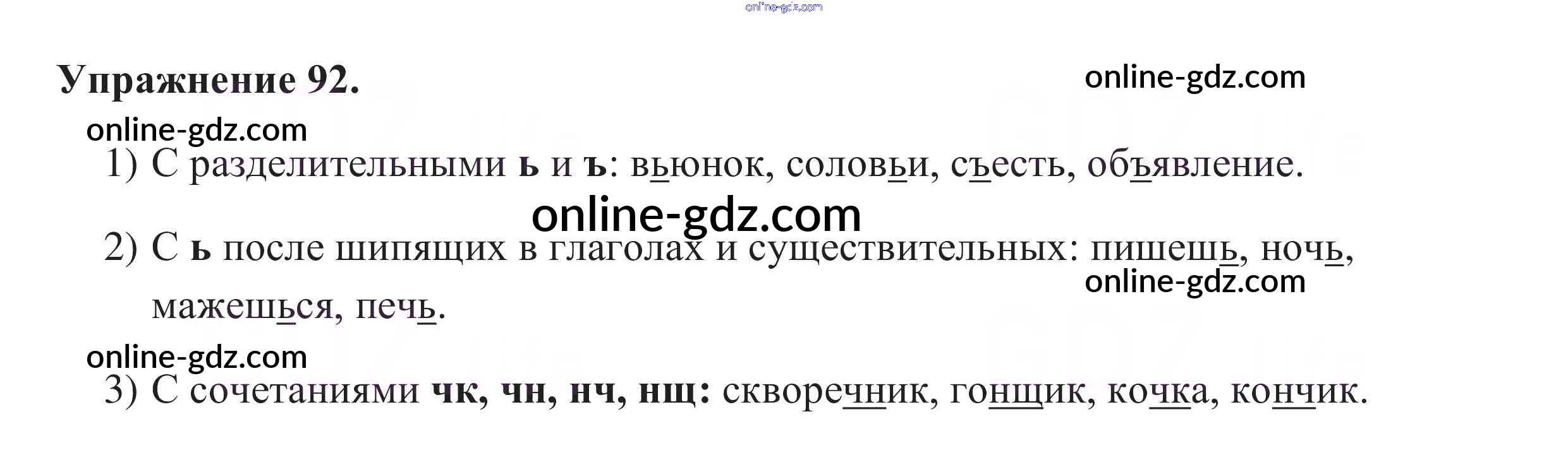 Готовые домашние задания по Русскому языку за 5 класс Учебник Разумовская, Львова 2014 - Упражнения 92