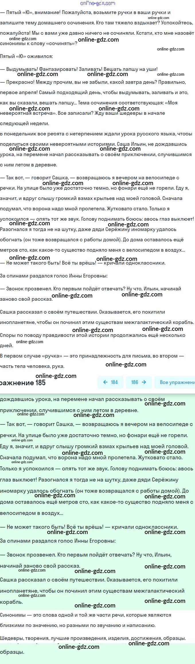 Готовые домашние задания по Русскому языку за 5 класс Учебник Рыбченкова, Александрова 2019 - Часть 1 185