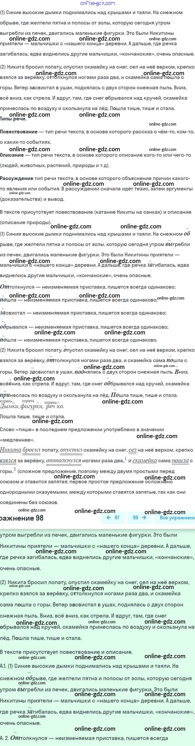 Готовые домашние задания по Русскому языку за 5 класс Учебник Рыбченкова, Александрова 2019 - Часть 1 98