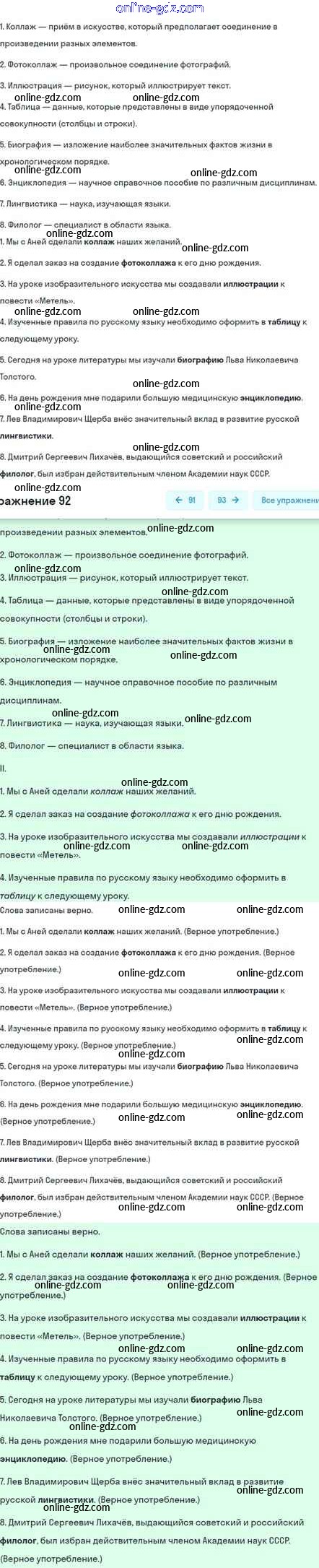 Готовые домашние задания по Русскому языку за 5 класс Учебник Шмелёв, Флоренская Алгоритм успеха 2022 - Глава 1 Часть 1 92