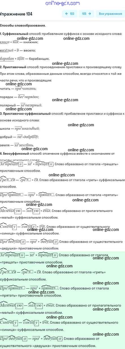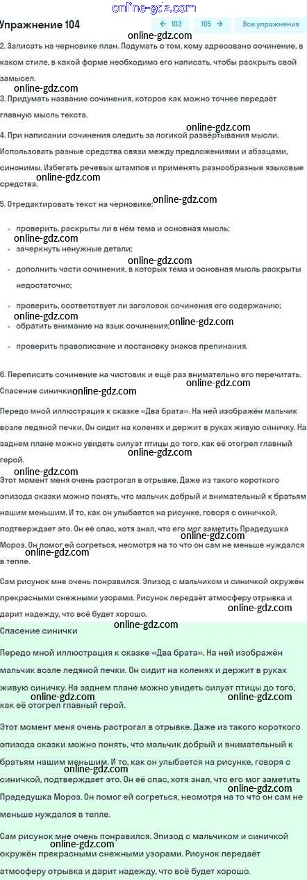 Готовые домашние задания по Русскому языку за 5 класс Учебник Шмелёв, Флоренская Алгоритм успеха 2022 - Глава 4 Часть 1 104