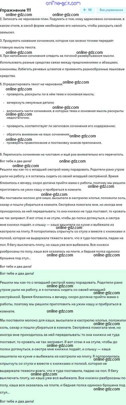 Готовые домашние задания по Русскому языку за 5 класс Учебник Шмелёв, Флоренская Алгоритм успеха 2022 - Глава 5 Часть 2 111