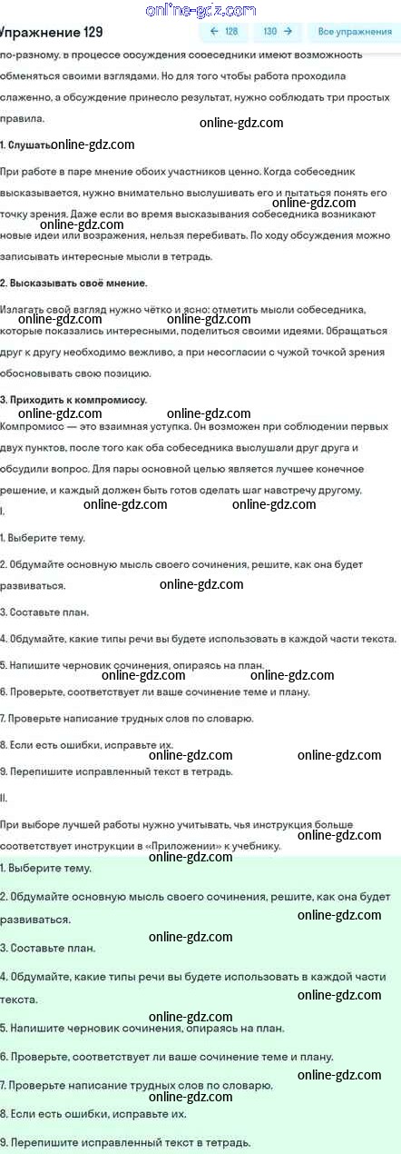 Готовые домашние задания по Русскому языку за 5 класс Учебник Шмелёв, Флоренская Алгоритм успеха 2022 - Глава 6 Часть 2 129