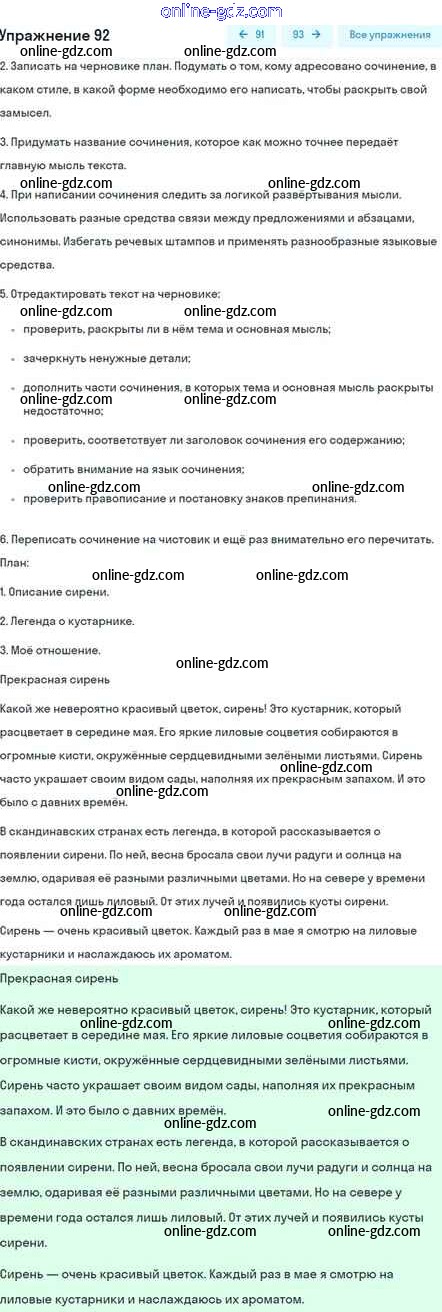 Готовые домашние задания по Русскому языку за 5 класс Учебник Шмелёв, Флоренская Алгоритм успеха 2022 - Глава 7 Часть 2 92