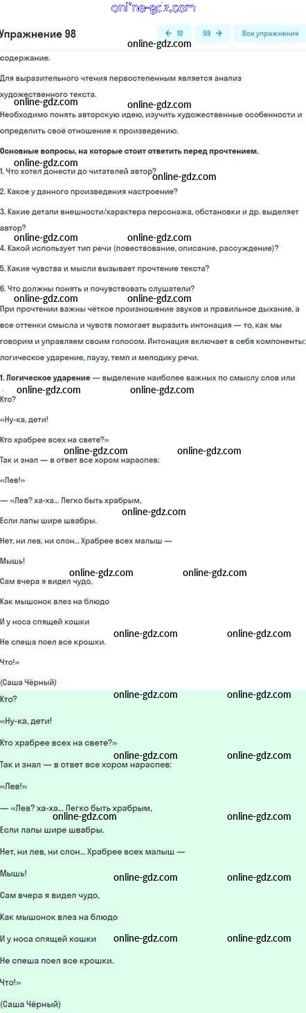 Готовые домашние задания по Русскому языку за 5 класс Учебник Шмелёв, Флоренская Алгоритм успеха 2022 - Глава 7. Вопросы и задания для самоконтроля Часть 2 98